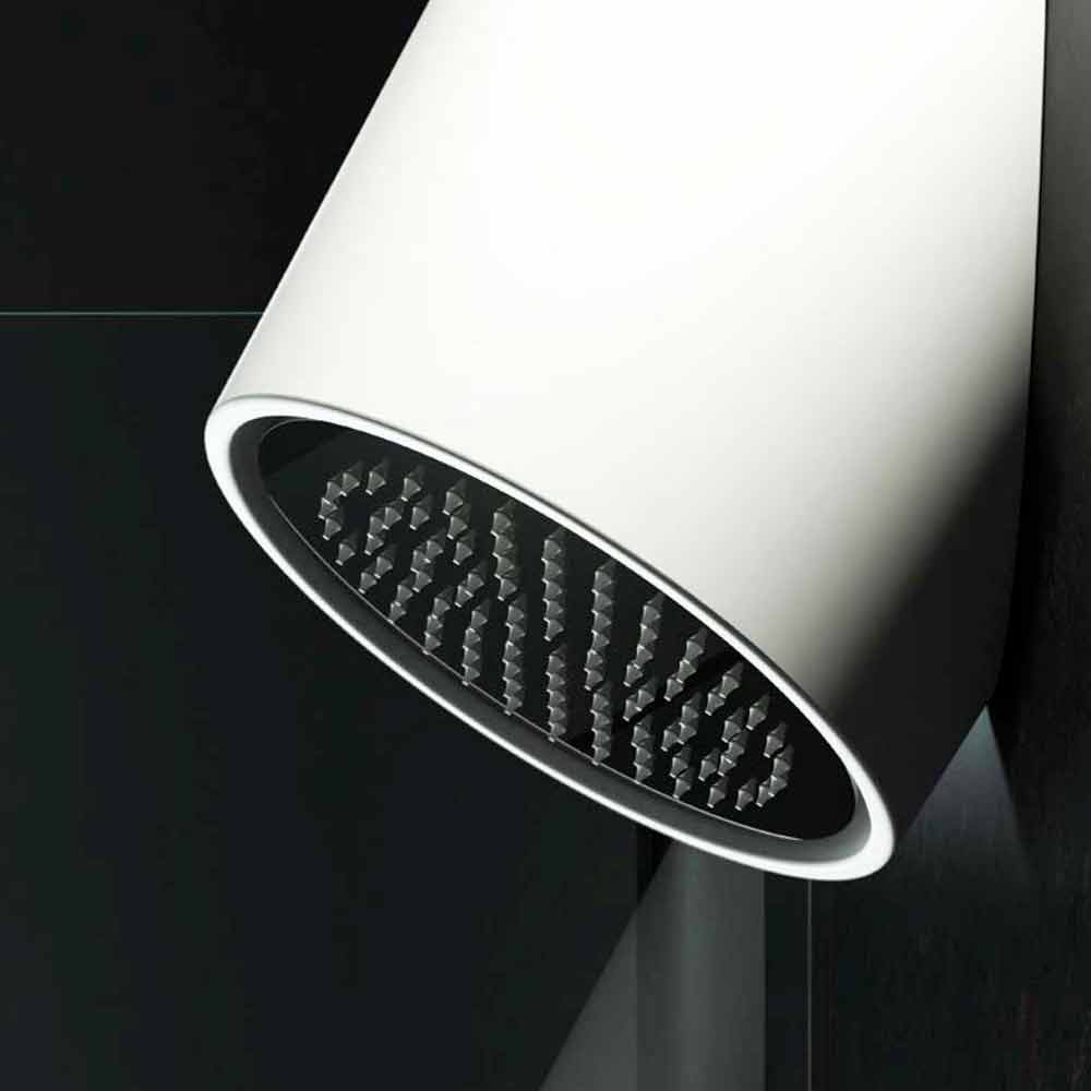 Wandduschkopf aus Luxolid in Italien, Rubano Rubano ist ein minimalistischer Duschkopf für die Wandmontage. Sein diagonaler Wasserstrahl ist so konzipiert, dass er den Fluss von Wasser optimiert, was die Idee eines Wasserfalls vermittelt.