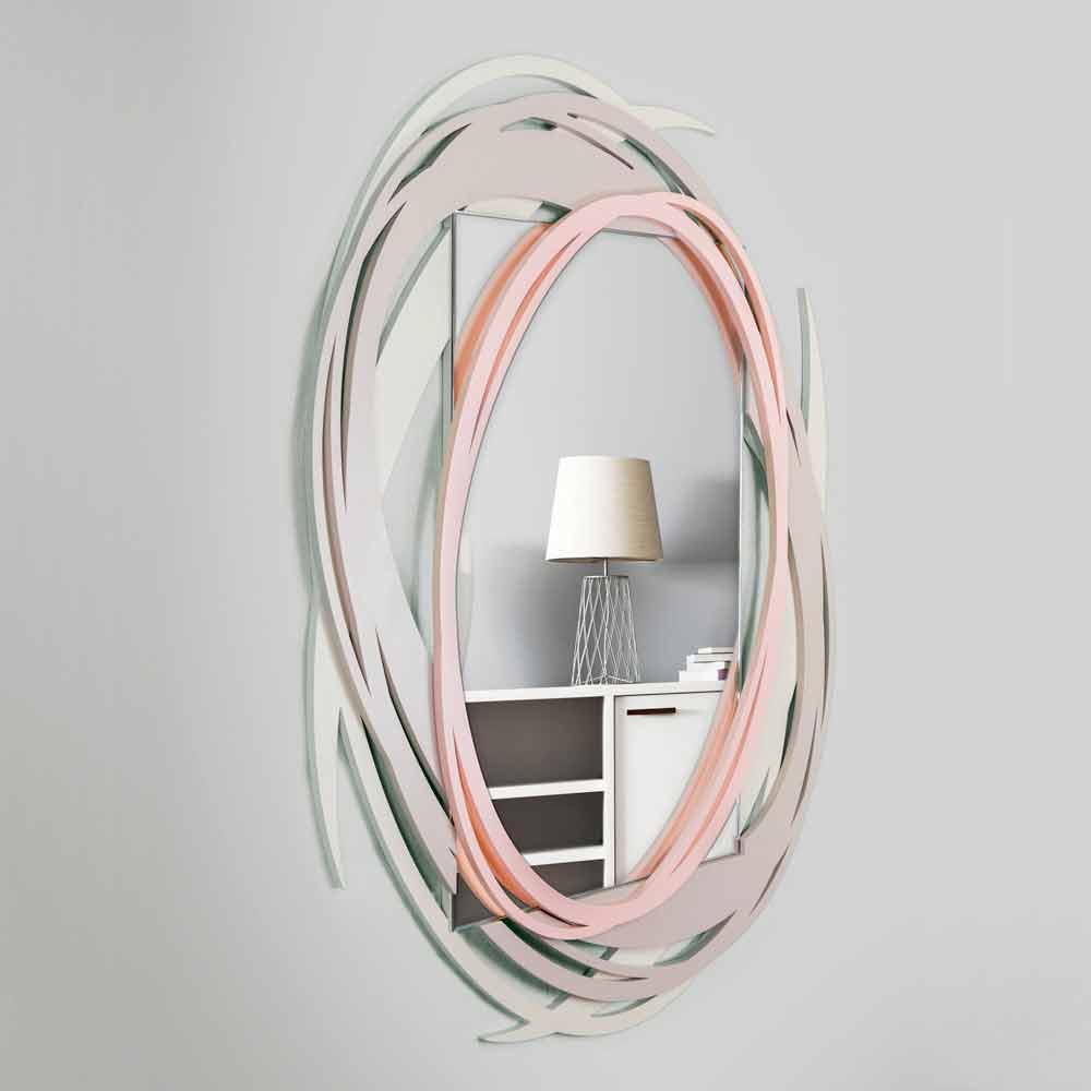 Spiegel aus lackiertem Holz in Pastelltönen. Die geschwungenen Linien passen sich allen Einrichtungsstilen an. Perfekt für den Eingangsbereich und für das Badezimmer in der vertikalen Version. Es kann auch horizontal aufgehängt werden und eignet sich somit für das Schlafzimmer .