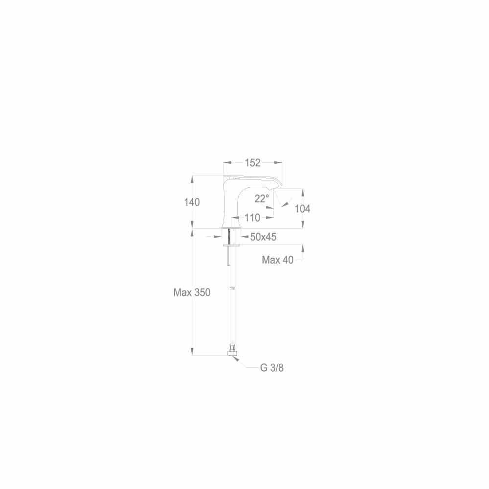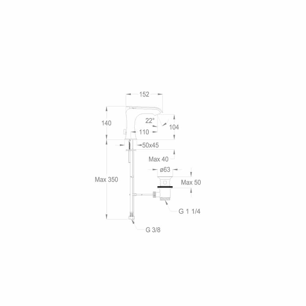 Hochmoderner Waschtischmischer mit Messingchrom- Finish, 140 mm hoch und einem Achsabstand von 110 mm. Komplett in Italien hergestellt mit hochwertigen Materialien, die den europäischen Standards entsprechen.