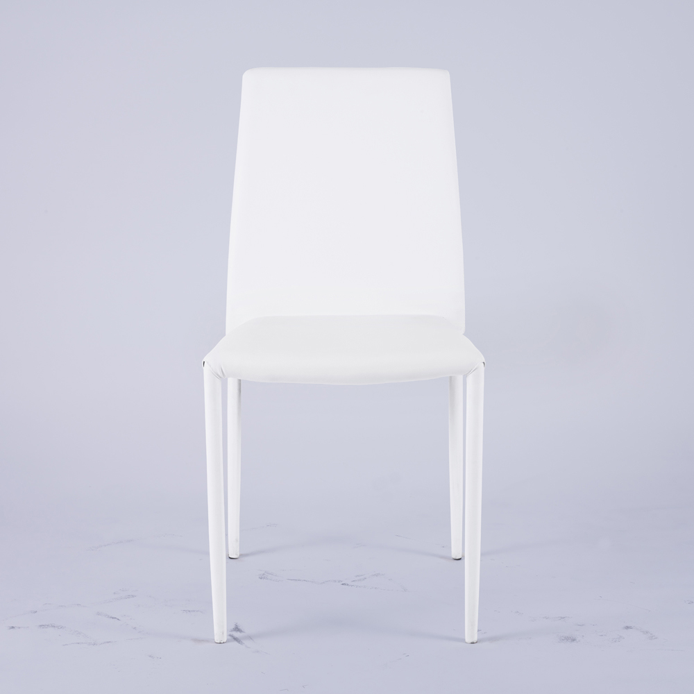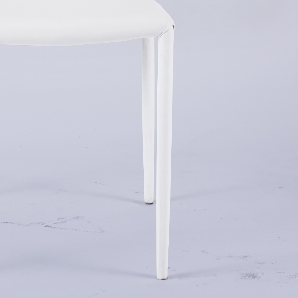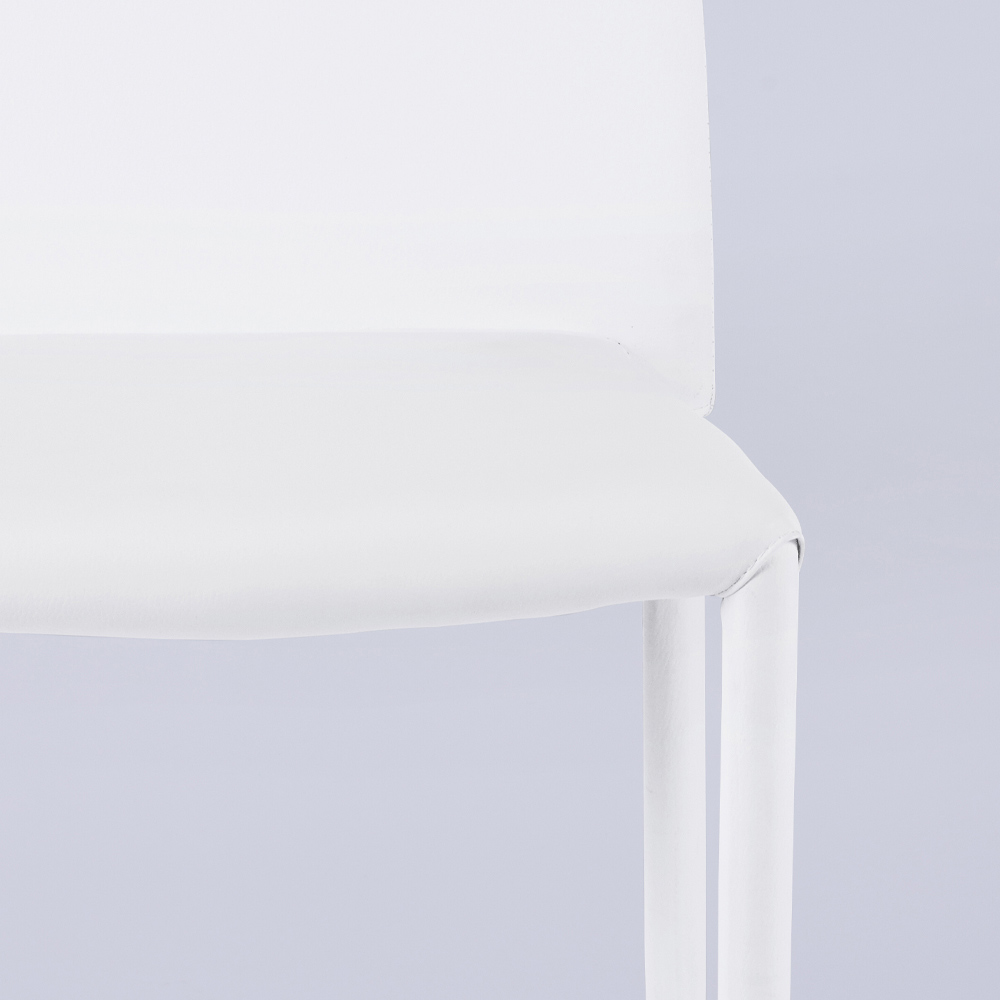 Stuhl in modernem Design mit Stahlschale, komplett mit weißemÖko-Leder bezogen. Ein Einrichtungsaccessoire, das sich problemlos an jeden stilistischen Kontext anpasst, in den es eingefügt wird, und dabei hilft, eine einzigartige und stilvolle Atmosphäre zu schaffen. Die ästhetische Leichtigkeit, die sein Design auszeichnet, macht es perfekt für die Vervollständigung von Wohnräumen wie Esszimmern und Küchen, aber auch Objektbereichen wie Bars und Restaurants, die durch seine einfachen und raffinierten Formen Persönlichkeit verleihen. Das Produkt ist Teil der neuen Linie moderner Produkte, die mit Respekt vor der Natur hergestellt werden.