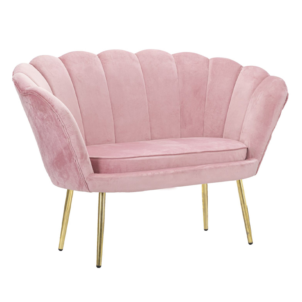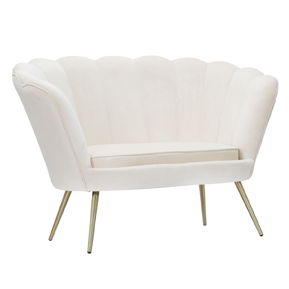 2-Sitzer-Sofa mit Samtbezug und vergoldeten Eisenfüßen.