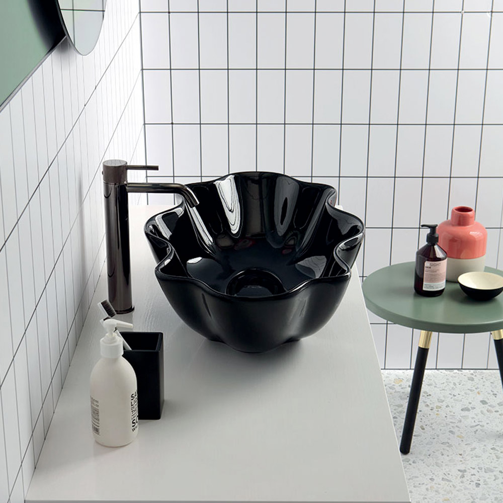 Aufsatzwaschbecken aus farbiger Keramik, handgefertigt in Italien.