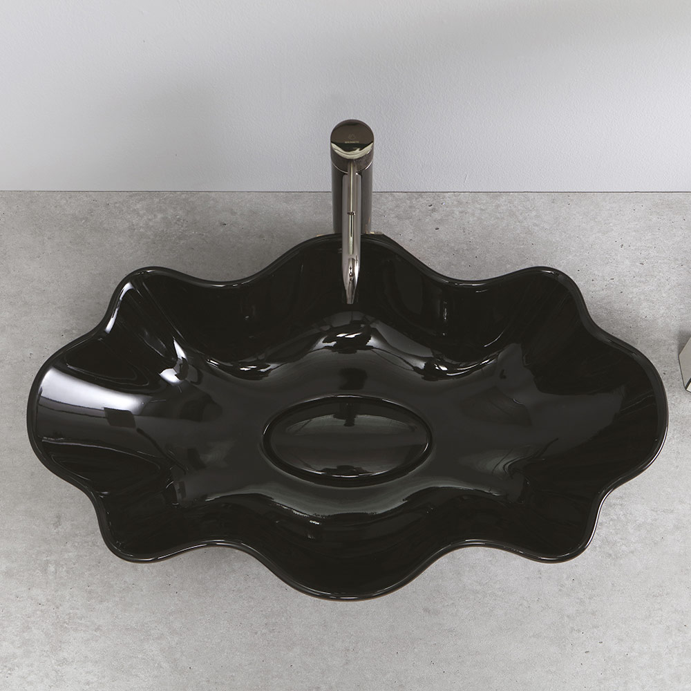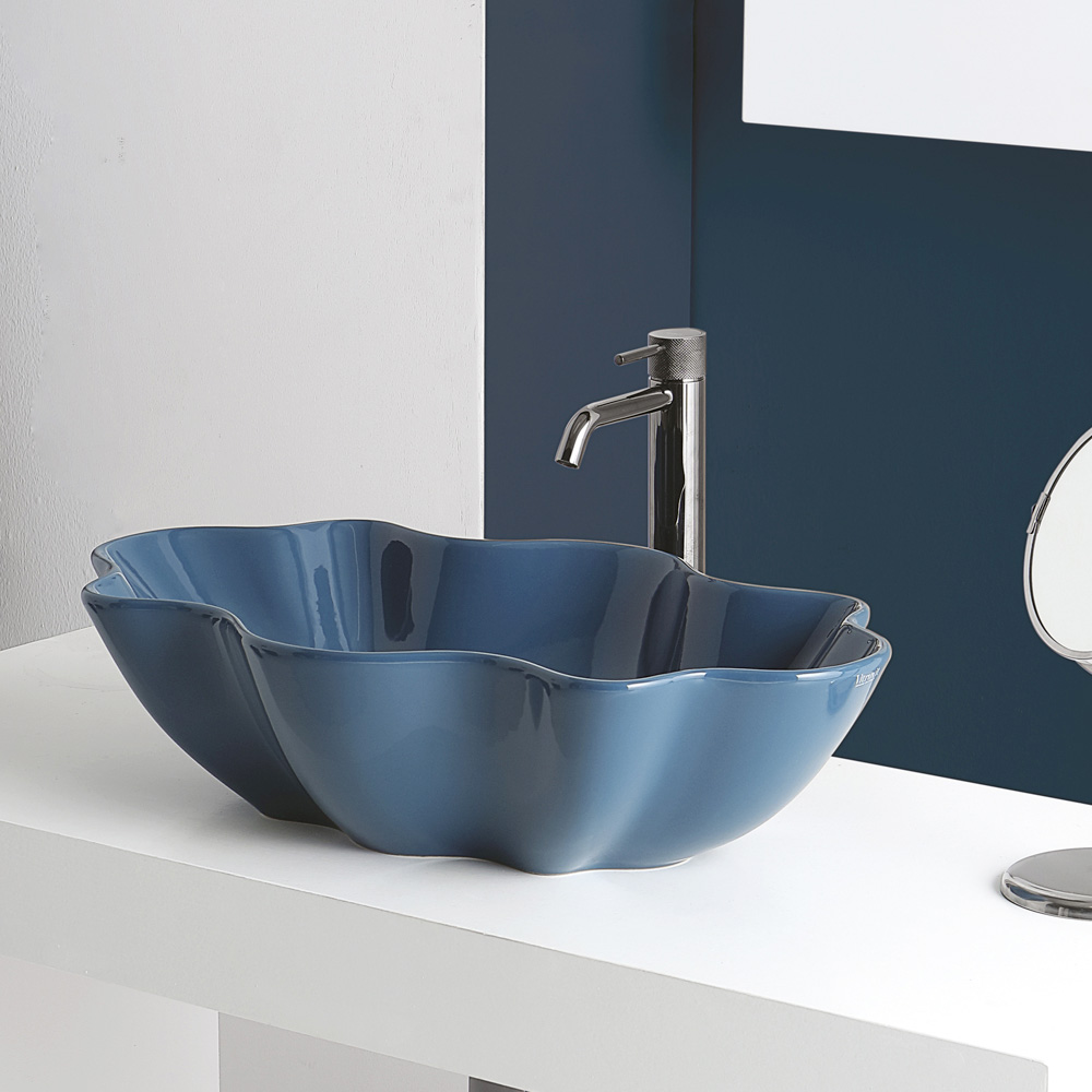 Aufsatzwaschtisch in Form für den Badbereich aus farbiger Keramik mit glänzendem Finish , in Italien in handwerklicher Produktion hergestellt . Ein originelles und faszinierendes Design , das aus dem Wunsch entspringt, Einrichtungslösungen abseits der klassischen Serienprodukte anzubieten. Das Ergebnis ist ein Waschtisch mit exklusiver Ästhetik, der durch seine imposante moderne Persönlichkeit und die besondere, an eine Muschel erinnernde Form auf sich aufmerksam macht.