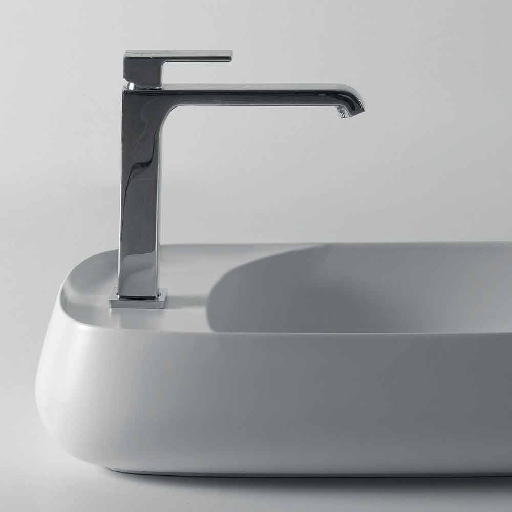 Modernes Waschbecken aus Keramik, hergestellt in Italien, Gaiola Gaiola ist ein fantastisches Aufsatzwaschbecken, das ausschließlich in Italien aus Keramik hergestellt und für Einlocharmaturen entwickelt wurde. Auf Anfrage ist es möglich, die Version ohne Löcher für Wandarmaturen zu bestellen.