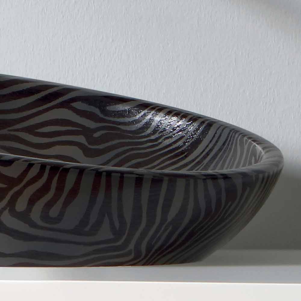 Modernes Aufsatzwaschbecken aus glänzender silberner Zebra-Keramik made in Italy Glossy ist das in Italien von Meisterhand gefertigte Aufsatzwaschbecken aus Keramik mit silbernem Zebrafinish. Perfekt für die Dekoration Ihres Badezimmers und dank seiner weichen und länglichen Form für jeden Stil geeignet.