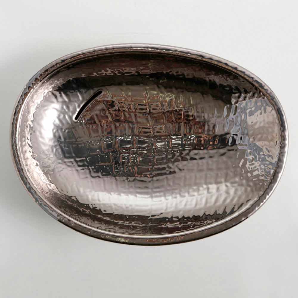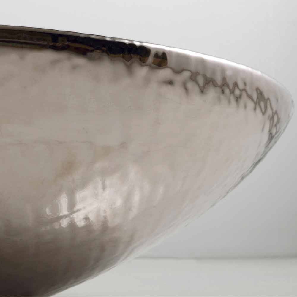 Aufsatzwaschbecken aus glänzender silberner Keramik, hergestellt in Italien Schrägwaschbecken, mit einer weichen und länglichen Form, gekennzeichnet durch einen kontinuierlichen Wasserablauf.