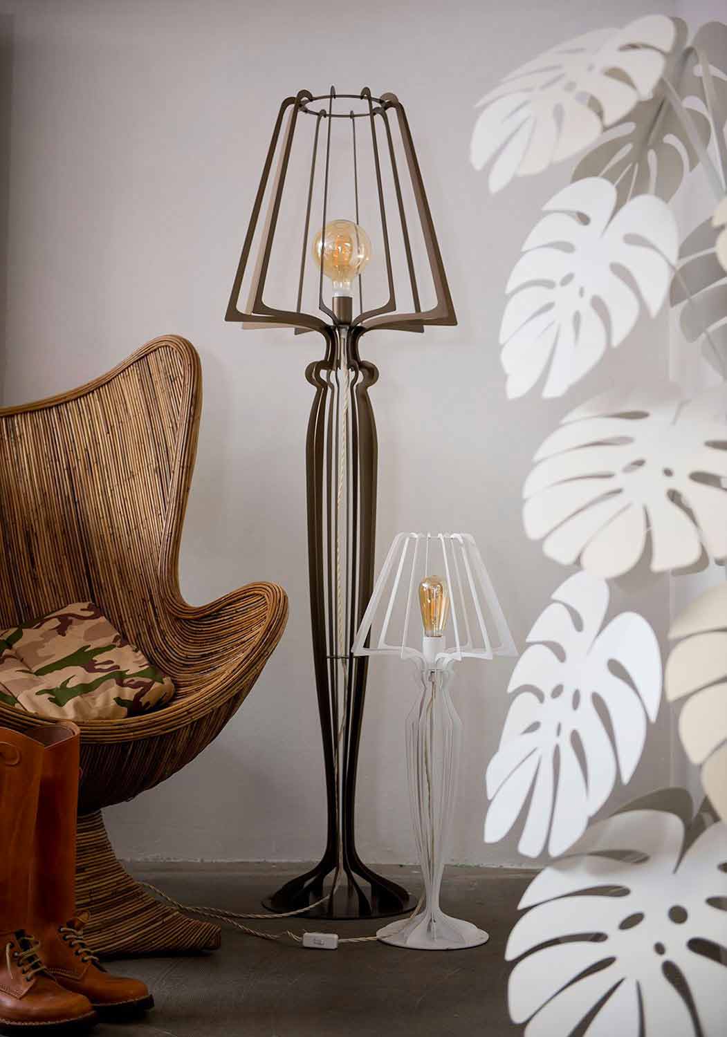 Moderne Design-Stehlampe, handgefertigt in Italien aus schlammigem, weißem, bronzefarbenem oder goldenem Eisen.