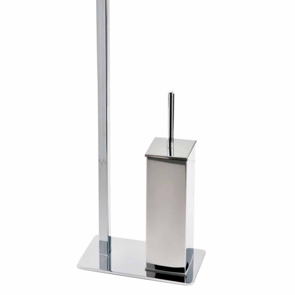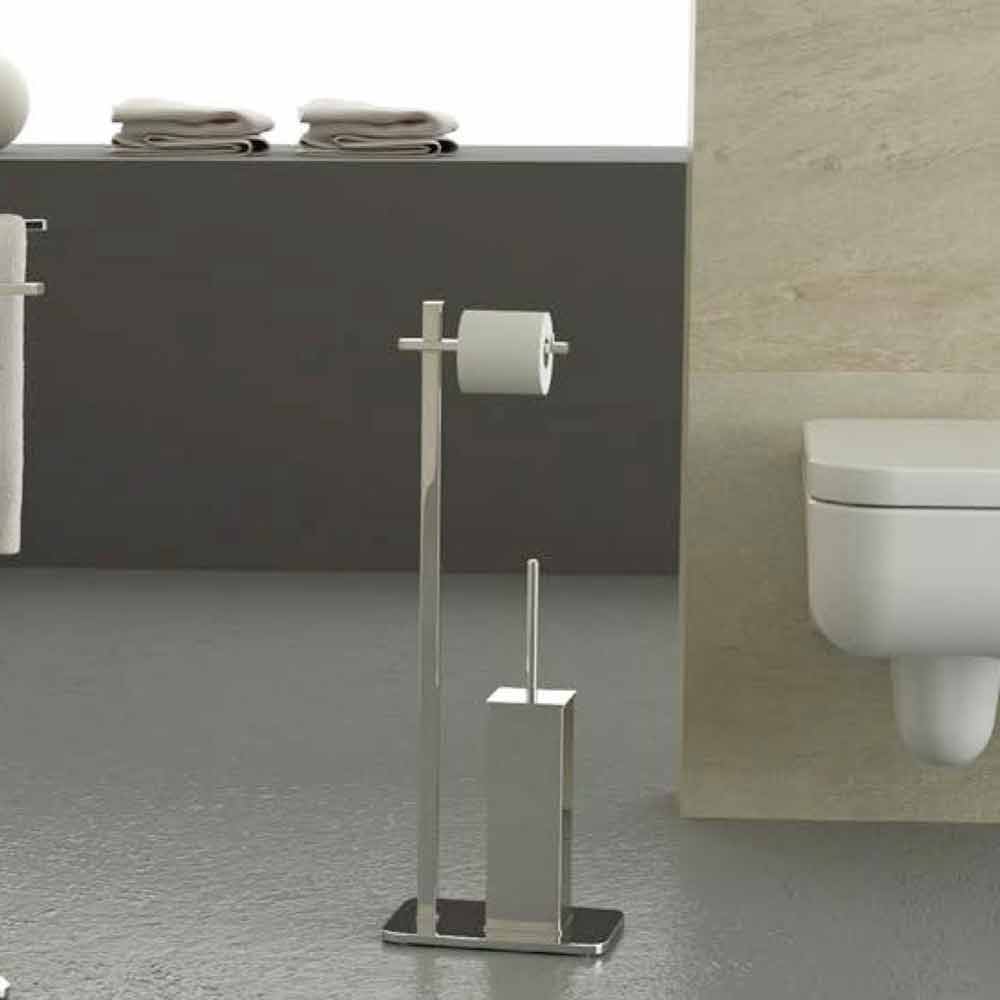Moderne freistehende Rolle und Toilettenbürste aus verchromtem Eisen Made in Italy.