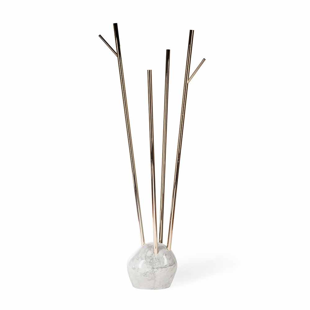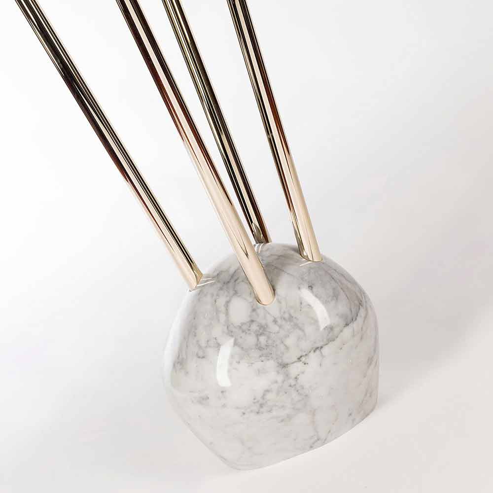 Modernes Design Kleiderständer Zak, mit Marmorsockel, hergestellt in Italien. Kleiderbügel mit Sockel aus weißem Carrara-Marmor und verzinkten Metallstäben in 24 kt glänzendem Gold. Zak ist Teil der Natural Collection von Giorgio Ragazzini, der sich von der Erforschung von Naturphänomenen und der Interaktion von Materialien mit menschlicher Technologie inspirieren ließ. Zak ist in der Option erhältlich: Pierre Bleue Marmor. Um ein Angebot anzufordern, kontaktieren Sie uns unter: info@viadurini.co.uk.