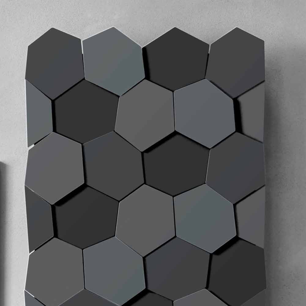 Hydraulischer vertikaler Wandkühler in modernem Design aus Stahl mit Sechsecken, hergestellt in Italien.
