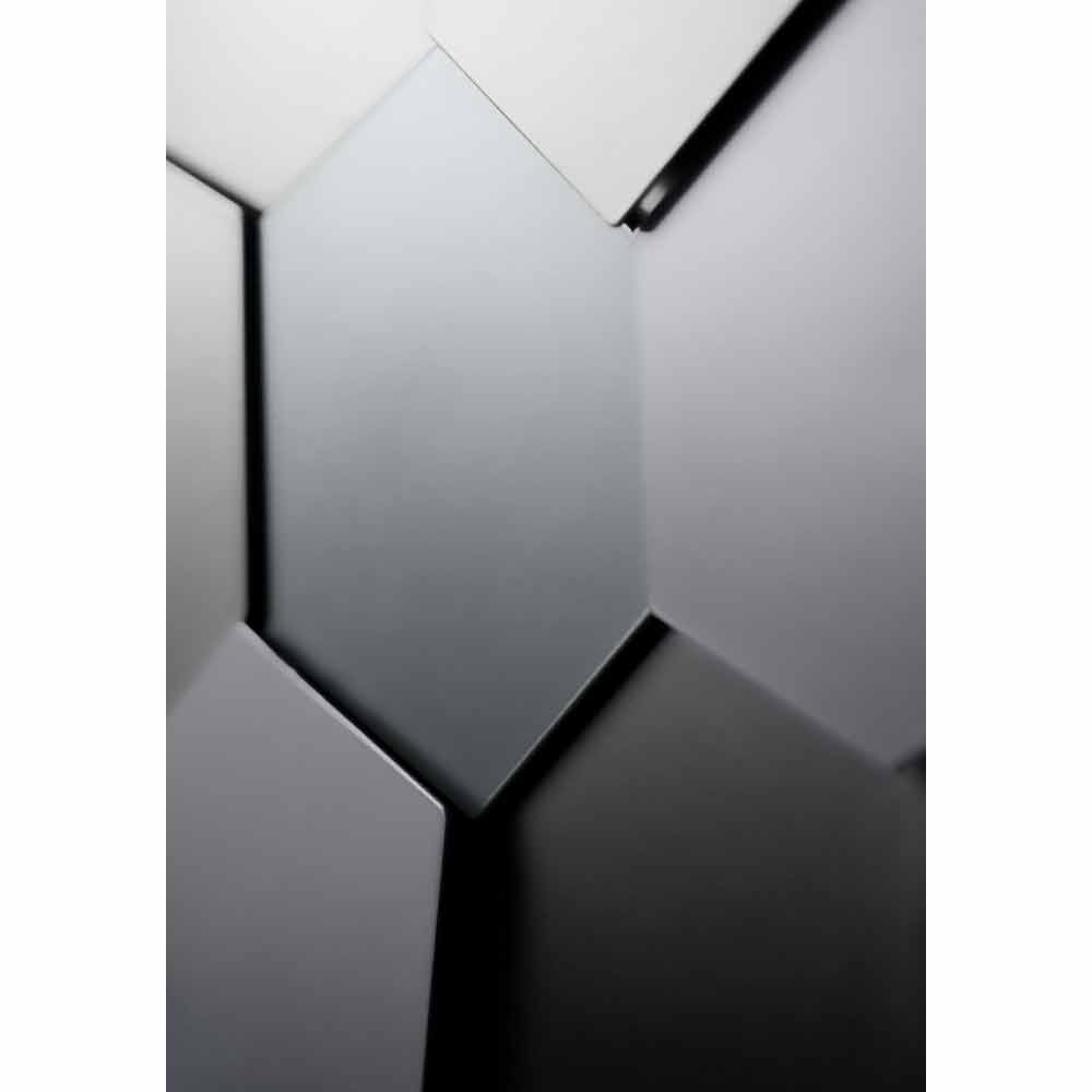 Diese hydraulische Strahlungsplatte hat ein modernes Design, das sich durch modulare und überlappende sechseckige Platten auszeichnet, die eine natürliche und suggestive Atmosphäre schaffen.