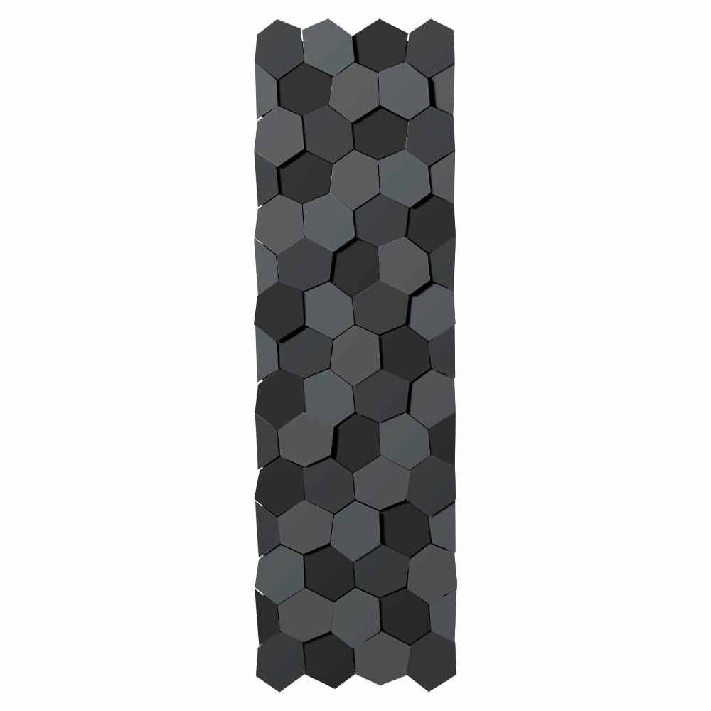 Die Farben der Sechsecke umfassen Anthrazitgrau RAL 7016, Blaugrau RAL 7031, Hellgrau RAL 7035, Telegrey 1 RAL 7045.
