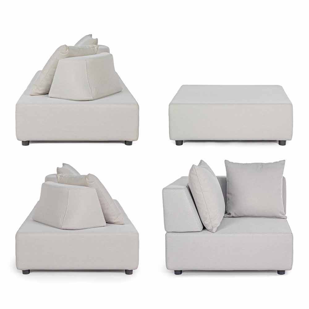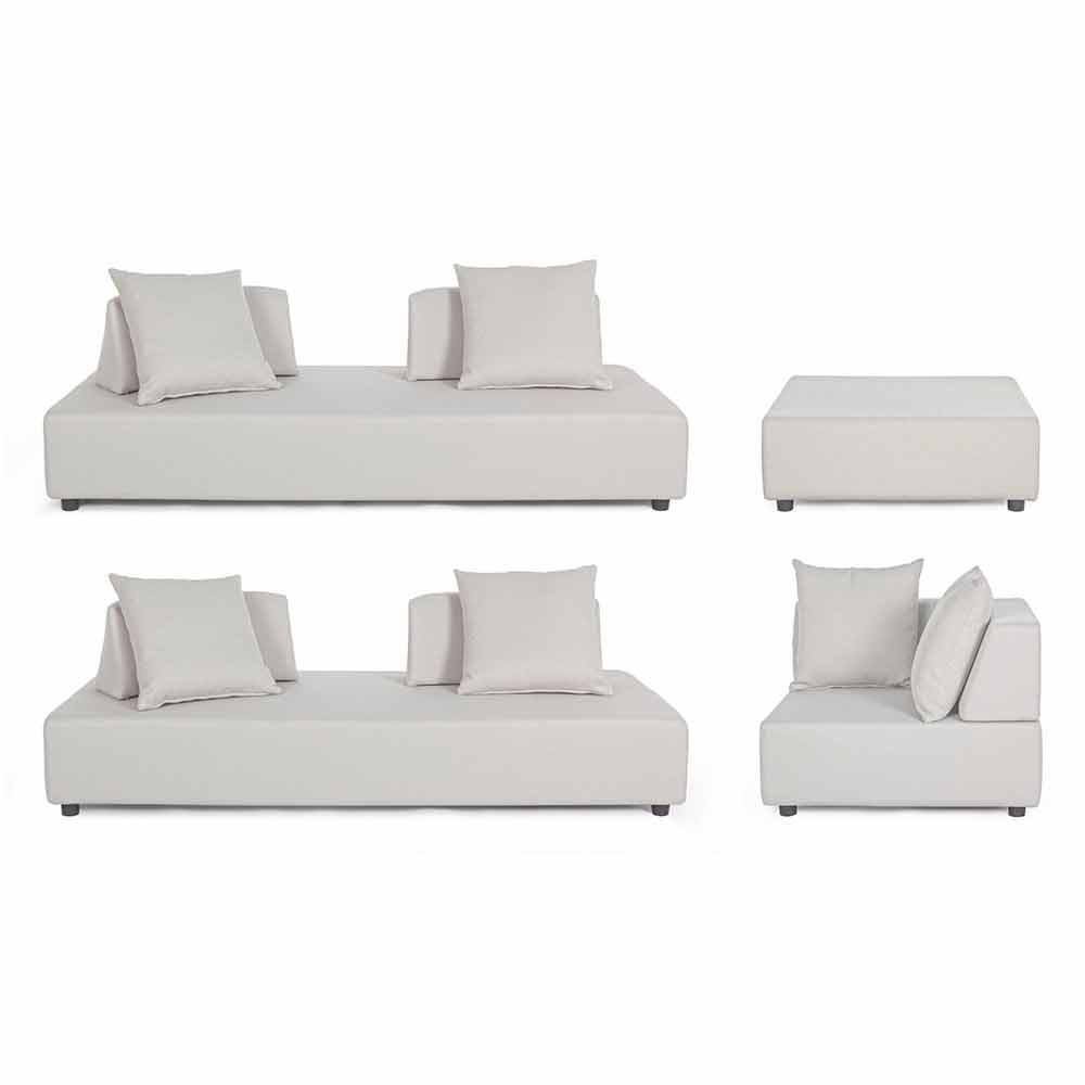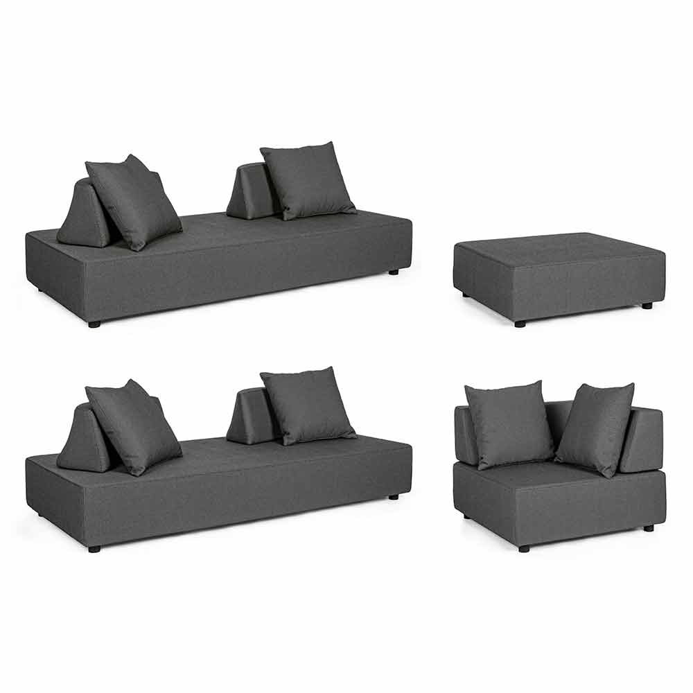 Zusammensetzung von Sofas und Ottomane mit Aluminiumstruktur; Abnehmbare Rückseiten mit Stahlkonstruktion, feuerverzinkt und pulverbeschichtet (Polyester).