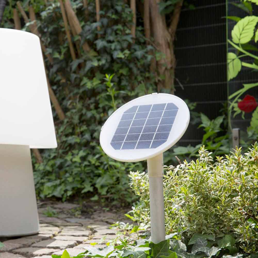 Solaraufsatz für den Außenbereich : Enthält ein fest installiertes monochromatisches weißes LED- Beleuchtungssystem mit einem externen Solarmodul mit integrierter Batterie (1800 mA), das das Sonnenlicht tagsüber einfängt und dann in Strom umwandelt. Für das korrekte Laden der Lampe, die sich in der Dämmerung über einen Lichtsensor selbständig einschaltet, ist eine ausreichende und ausreichende Menge an Solarlicht erforderlich. Dieses System benötigt keine Steckdosen, um die Umwelt zu schützen. Ideal für Beleuchtungswege, Balkone und Terrassen. Dauer bei voller Ladung: ca. 6 Stunden. Leistungsaufnahme: 2 Watt, Temperatur: warmweiß 3000K, schwarzes Kabel 5m.