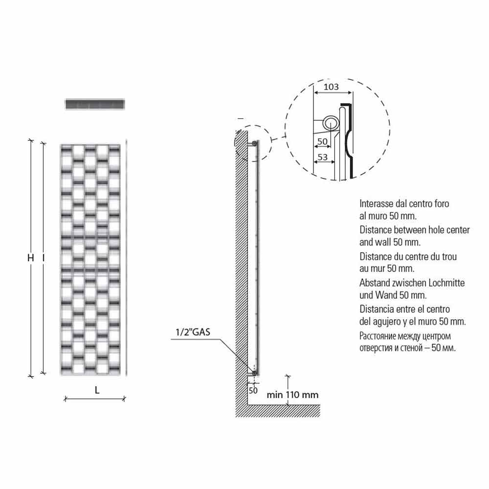 NB: Die Ventile und der Halter sind ausgeschlossen, um sie zu erhalten, schreiben Sie uns in das Formular "Informationen anfordern". Auf Anfrage ist auch der Handtuchhalter erhältlich , der die Breite des Heizkörpers um 18 mm verlängert und nicht im Preis enthalten ist.