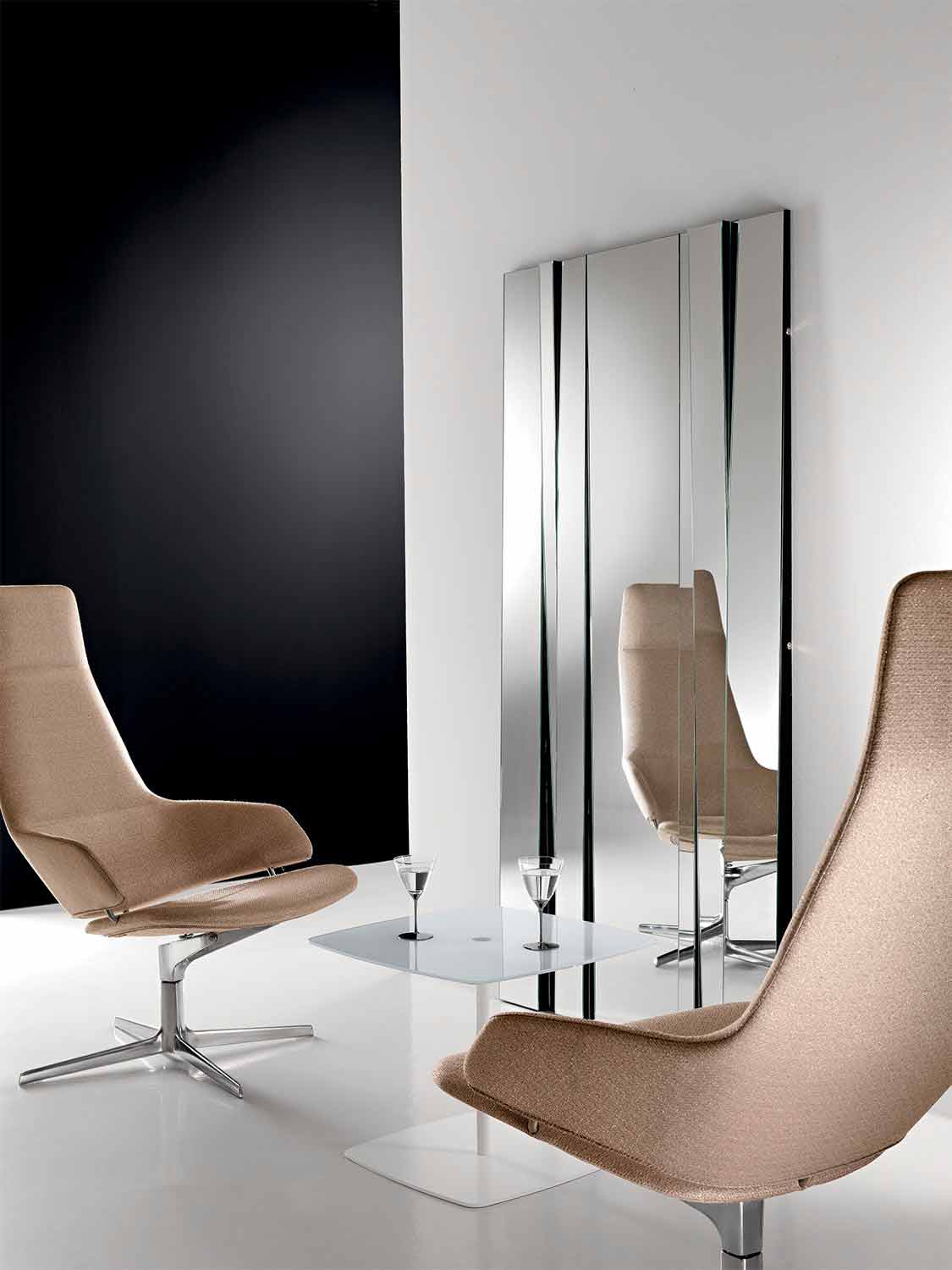 Dank seines innovativen Designs und des Wechsels von geneigten Spiegelbändern ist es perfekt, jede Art von Umgebung mit Stil und Eleganz auszustatten.