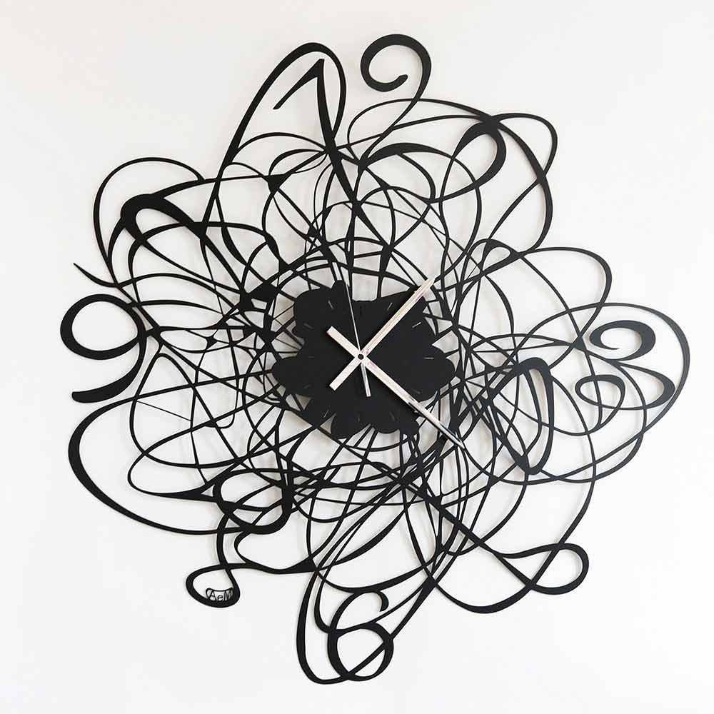 Wanduhr in modernem Design aus lackiertem Eisen in schwarz oder weiß, handgefertigt in Italien.