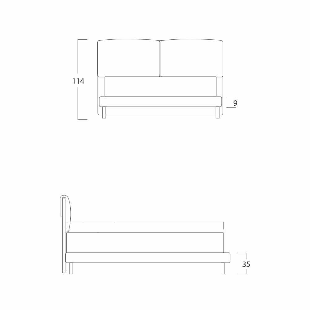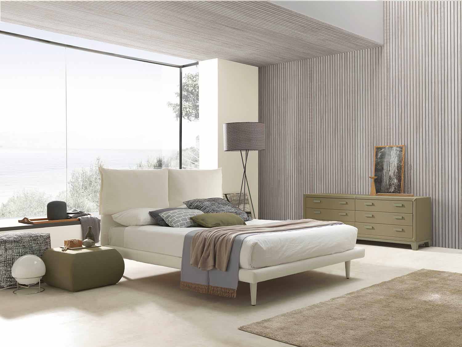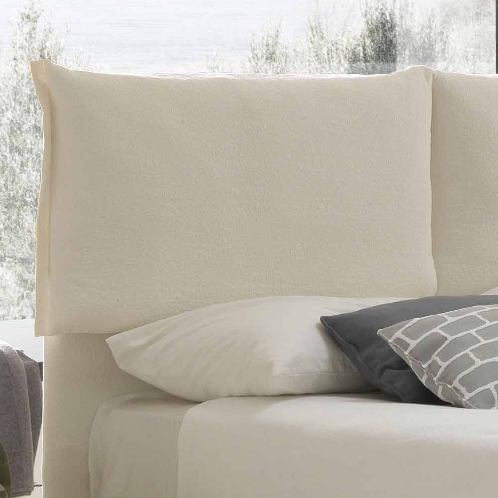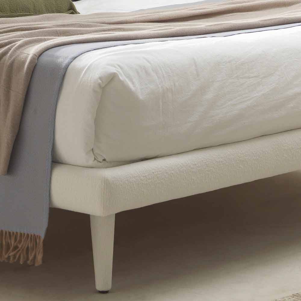 Doppelbett im modernen Design Iorca von Bolzan, hergestellt in Italien Das Doppelbett Iorca zeichnet sich durch eine dünne, 9 cm hohe Basis aus, die der Struktur Leichtigkeit und Einfachheit verleiht. Die Besonderheit dieses Bettes sind die großen und bequemen Kopfteilkissen. Iorca wurde entwickelt, um das Schlafzimmer zu einem Raum der Entspannung zu machen, in dem Sie angenehme Momente des Komforts genießen können. Die weichen und einfachen Linien schaffen eine intime Atmosphäre. Es ist außerdem vollständig abnehmbar. Die Struktur besteht aus 40 mm dickem MDF, ist mit Polyurethanschaum ohne Fluorchlorkohlenwasserstoffe gemäß UNI-Normen überzogen und mit lichtbeständigem Velfodera ausgekleidet. Das Bett wird mit einem Lattenrost mit Metallstruktur geliefert, gebogener Rahmen mit 50 x 37 mm Profil, lackiert mit Epoxidpulver. Normaler orthopädischer Lattenrost, 15 Latten aus gebogenem Buchensperrholz 68 x 8 mm pro Bett. Vasenfüße H 26 cm, weiß lackiert