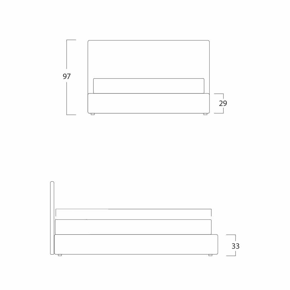 Modernes Doppelbett mit Stoff Gaya New von Bolzan bezogen Das Bett Gaya New zeichnet sich durch ein zeitgenössisches Design aus, das Funktionalität und Ästhetik vereint. Ein einfacher, essentieller Look ohne überflüssige Details, der jedoch Komfort bietet und die Umgebung individuell gestaltet. Es ist vollständig abnehmbar. Die Struktur besteht aus Tannenholz-Blockplatten mit natürlichem Innenfinish H.29, überzogen mit Polyurethanschaum ohne Fluorchlorkohlenwasserstoffe gemäß UNI-Normen und ausgekleidet mit lichtbeständigem Velfodera. Das Bett wird mit einem Lattenrost mit Metallstruktur geliefert, gebogener Rahmen mit einem 50x37 mm großen Profil, lackiert mit Epoxidpulver. Normaler orthopädischer Lattenrost, 15 Latten aus gebogenem Buchensperrholz 68x8 mm pro Bett. Vasenfüße h.4 cm.