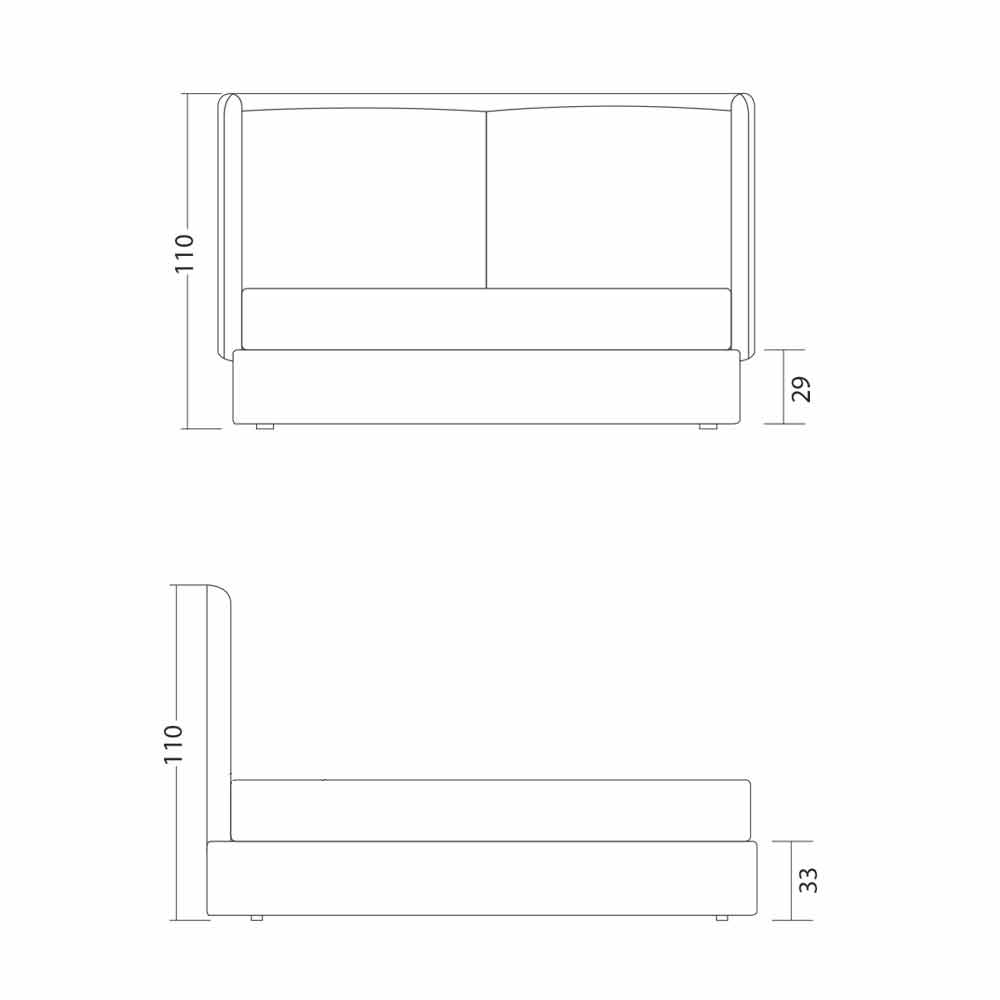 Doppelbett, hergestellt in Italien, gepolstert, Kate von Bolzan Das Doppelbett Kate zeichnet sich durch ein modernes Design aus. Die handwerkliche Verarbeitung der sichtbaren Nähte am Kopfteil ist ein wertvolles Detail, das einen glamourösen und besonderen Look erzeugen kann. Das Bett Kate hat komplett abnehmbare Bezüge. Die Struktur besteht aus Tannenholz-Blockplatten mit natürlicher Innenoberfläche H. 29 cm, mit Polyurethanschaum ohne Fluorchlorkohlenwasserstoffe gemäß UNI-Normen überzogen und mit lichtbeständigem Velfodera ausgekleidet. Das Bett wird mit einem Lattenrost mit Metallstruktur geliefert, gebogener Rahmen mit 50x37 mm Profil, lackiert mit Epoxidpulver. Normaler orthopädischer Lattenrost, 15 Latten aus gebogenem Buchensperrholz 68x8 mm pro Bett. Vasenfüße H 4 cm.
