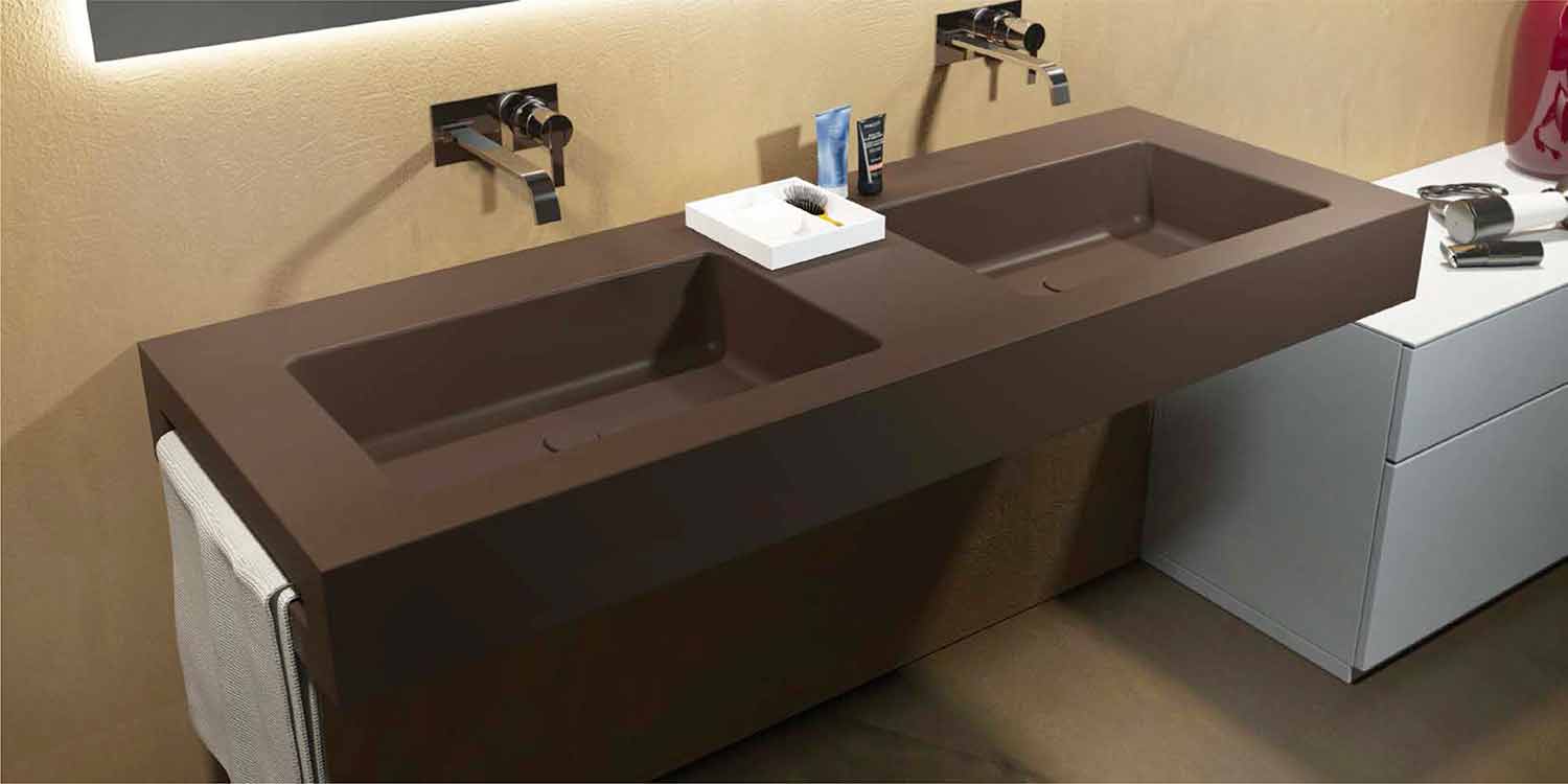 Solid Surface-Luxolid® ist eine synthetische Verbindung, die auf hoch ausgewählten Polyacrylharzen basiert und mit Mineralien (Aluminiumtrilhydrat) gefüllt ist, die durch einen Polymerprozess in Form hergestellt werden. Das Ergebnis ist ein Material mit einer einheitlichen Struktur und einem überlegenen Qualitätsniveau im Vergleich zu den Produkten, die von der Platte produziert werden: Der Luxolid® zeigt an der Oberfläche der Platte keine Unterschiede in Farbe oder Kompaktheit. Die Produkte in Luxolid® werden in Italien hergestellt: von der Auswahl des Rohmaterials über das Mischen nach exklusiven Formeln, von der Modellstudie über die Umsetzung in der Form bis hin zum weitgehend von Hand hergestellten Finish. Produkte, die beschädigt wurden, wie z. B. tiefe Kratzer oder Abplatzungen, können repariert werden. Außerdem wird empfohlen, die Produkte stets zu trocknen, damit das stehende Wasser keine Kalksteinringe bildet (was jedoch das Produkt nicht angreifen kann). . Die tägliche Reinigung kann mit normalen Reinigungsmitteln durchgeführt werden.
