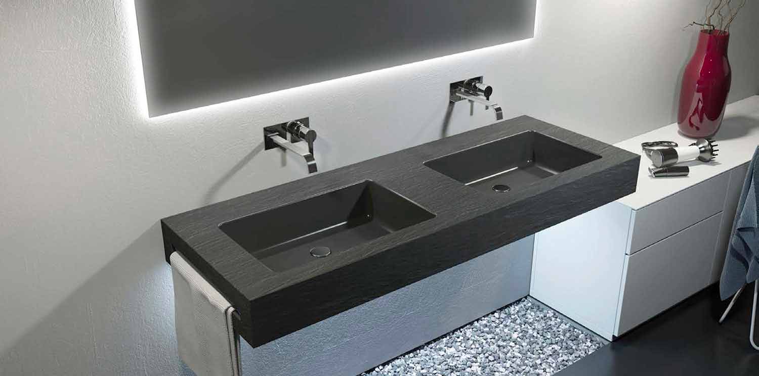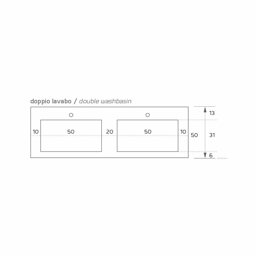 Rufina ist ein integriertes System, das aus einer Materialplatte besteht, in der die beiden Waschbecken untergebracht sind. Seine Besonderheit ist, dass es auf jeder Art von Basis installiert werden kann oder in der suspendierten Version belassen werden kann.