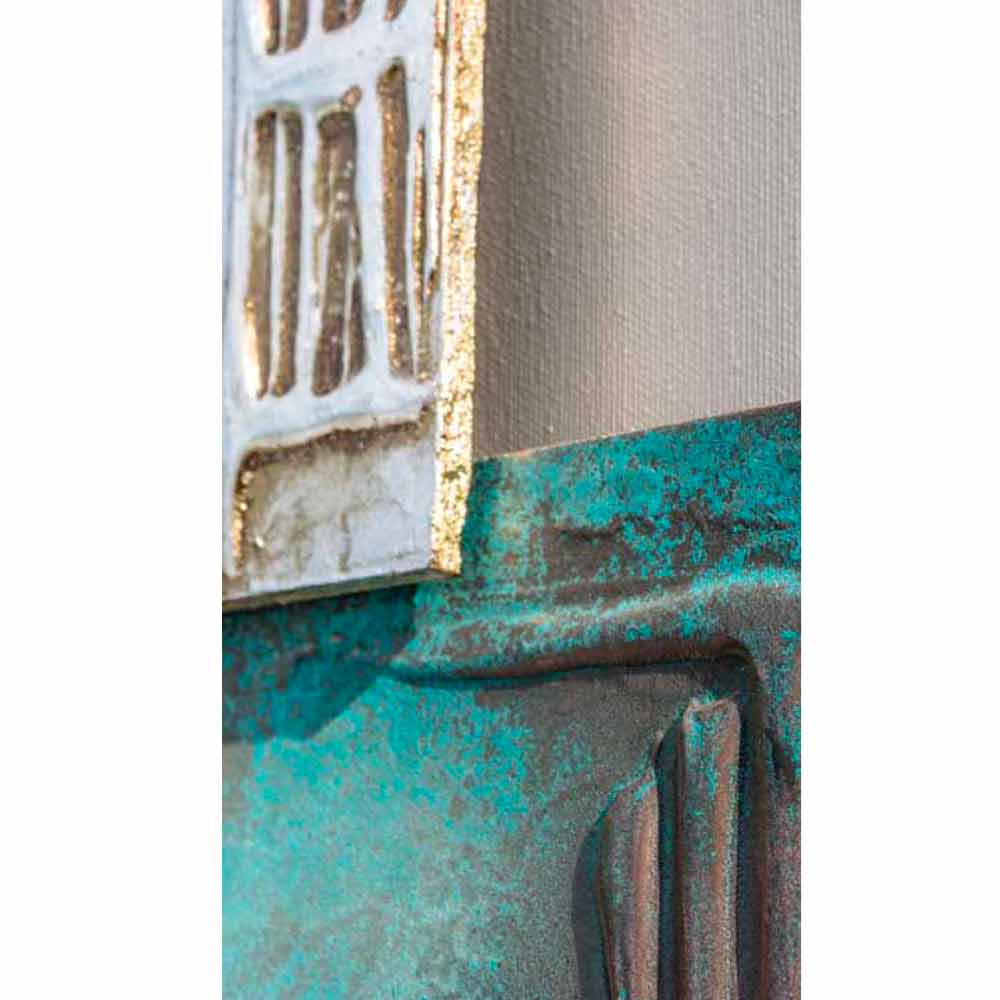 Das Bild besteht aus 8 handdekorierten Elementen in folgenden Ausführungen: Gold, Silber, Bronze, Rosteffekt.