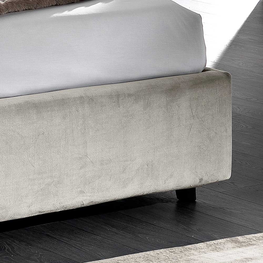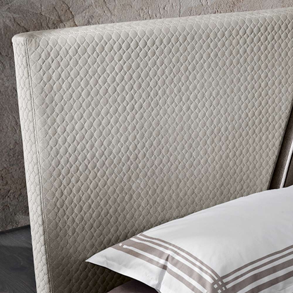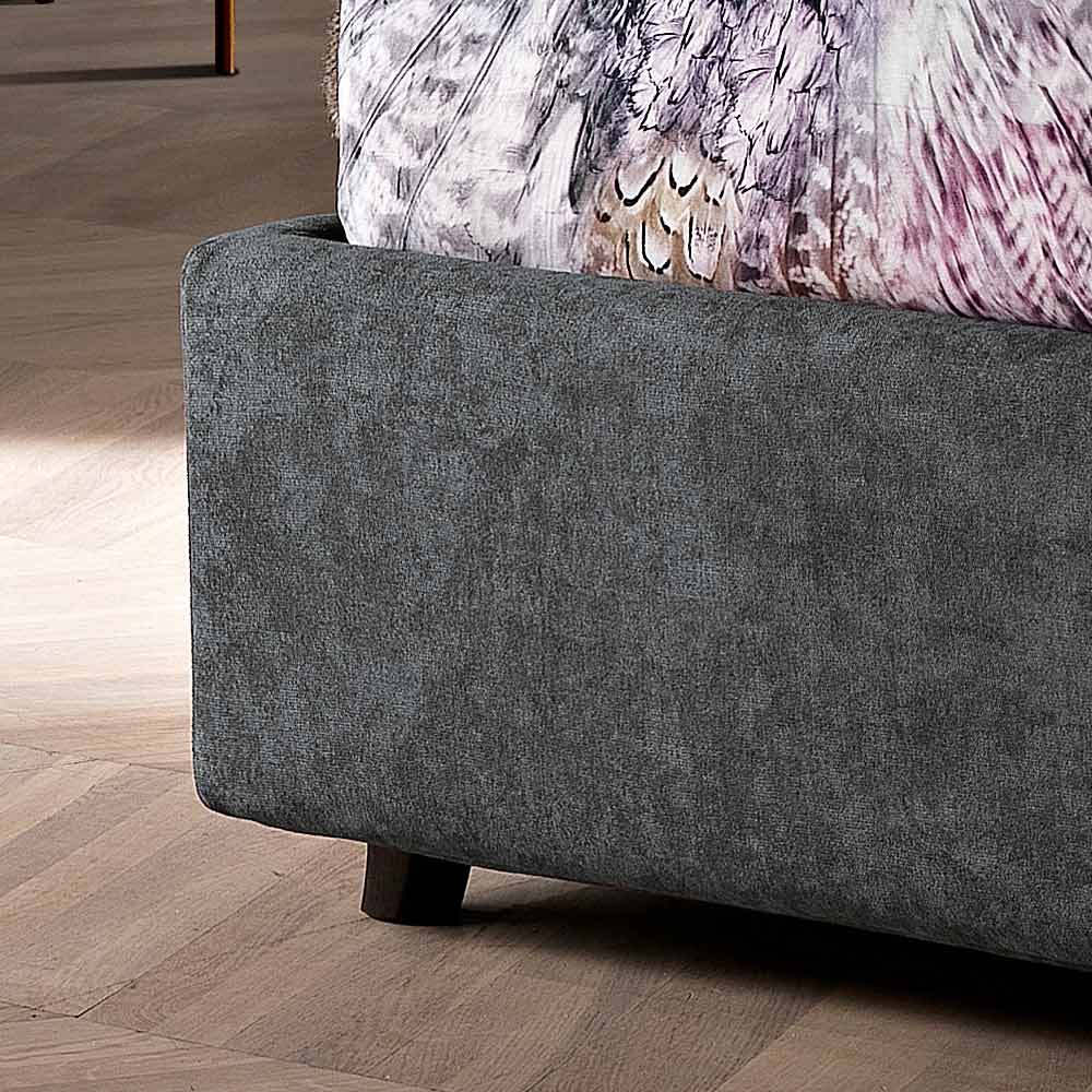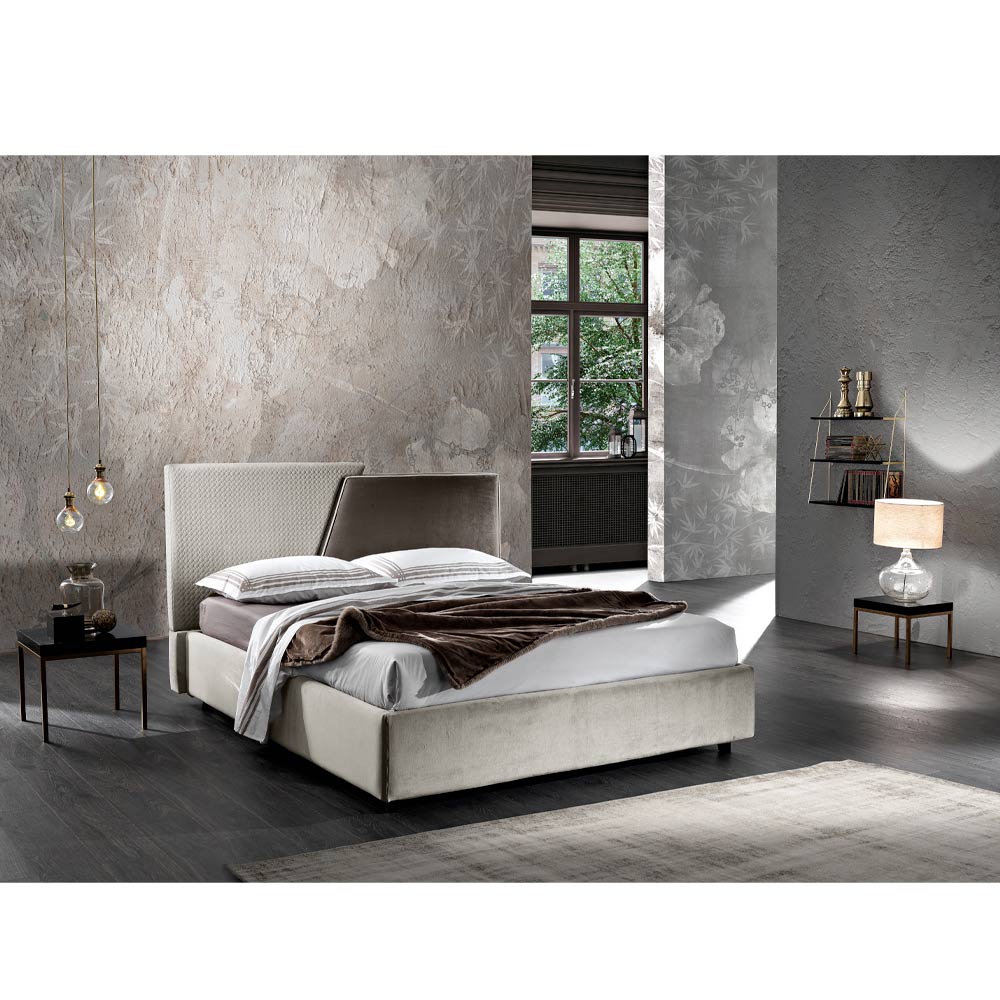 Das Doppelbett zeichnet sich durch sein Design aus diagonalen Linien und entschiedenen Formen aus, die an die Moderne erinnern. Es passt sich jedem Kontext und Einrichtungsstil an, dank der Möglichkeit, zwei verschiedene Farbtöne verschiedener Stoffe zu kombinieren, was es einzigartig und einfach zu kombinieren macht.