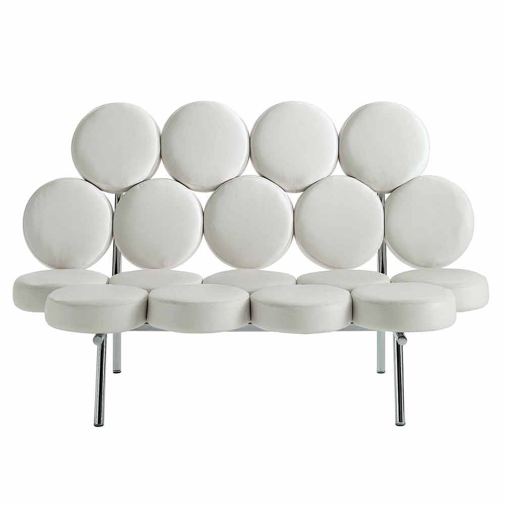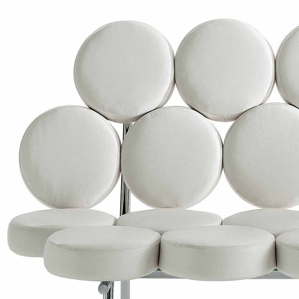 Modernes Wohnzimmersofamade in Italy mit verchromter Stahlstruktur , Sitz und Rückenlehne aus Polyurethangummi und Dacron mit äußerem Lederbezug . Eine Idee von Möbelndas die Eleganz des Leders und die Funktionalität seiner Form in sich vereint und einen bequemen und gleichzeitig originellen Sitz und einen originellen Stil bietet, ideal für diejenigen, die nach einzigartigen Artikeln suchen, die ihren Wohnbereich mit einer kreativen Note bereichern können. Sein exzentrisches Design unterstreicht seine Persönlichkeit und macht es auch zu einem originellen Dekorationselement , das jeden Raum charakterisieren und einzigartig machen kann, dessen unbestrittener Protagonist er wird.