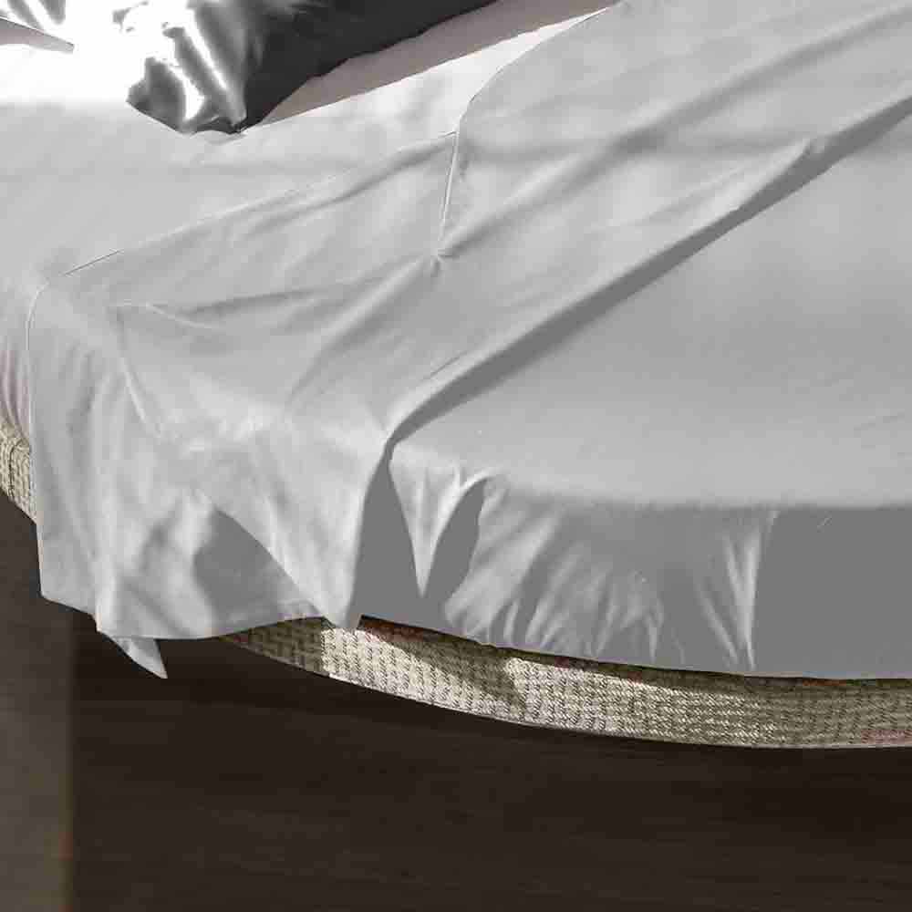Rundes Doppelbett mit Stoffbezug und Eckkopfteil, Made in Italy-Design.