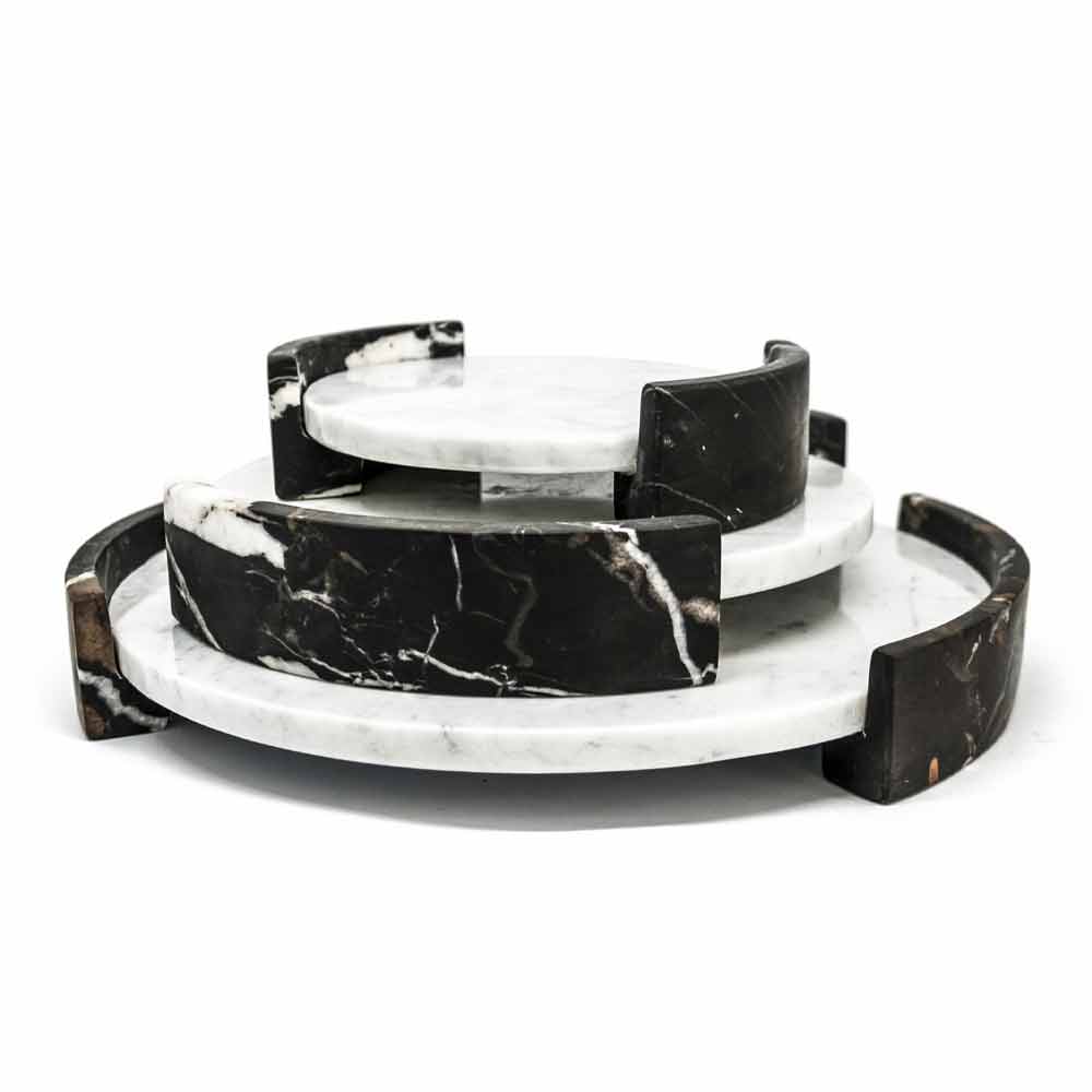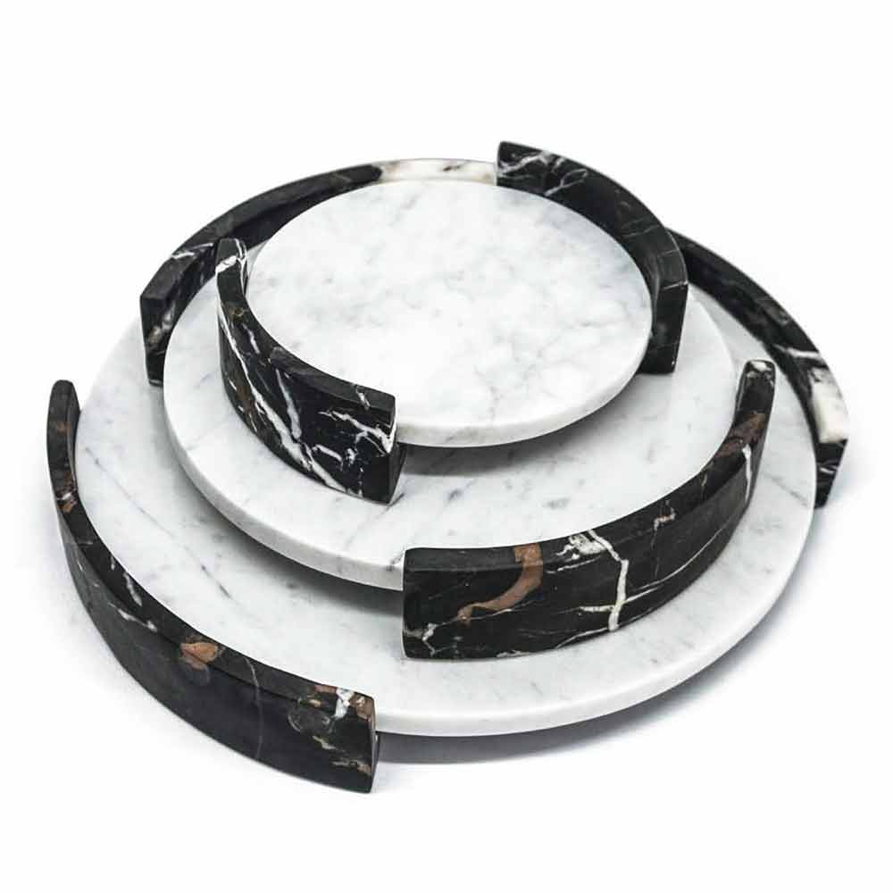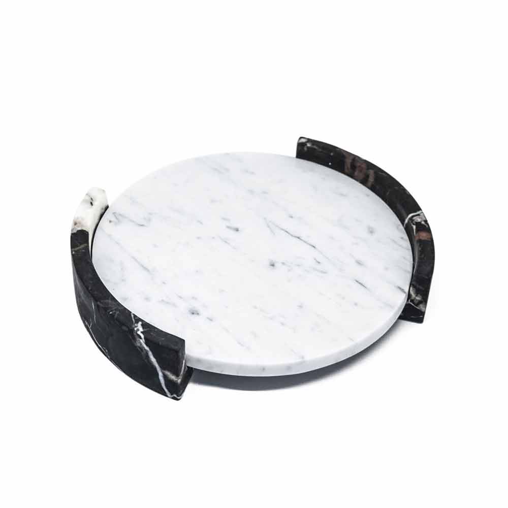 Rundes Tablett aus weißem Carrara-Marmor. Es ist ein einzigartigesStück, da jeder Marmorblock in Adern und Schattierungen unterschiedlich ist. Der für die Realisierung des Produkts verwendete Marmor stammt aus dem Steinbruch Poggio Silvestre, aus dem seit dem letzten Jahrhundert klassifizierter weißer Marmor erster Qualität stammt . Von italienischen Handwerkern handgefertigtes Produkt, das seit Generationen auf Marmorverarbeitung spezialisiert ist. Gerade aus diesem Grund muss jede Abweichung in Form und Farbe als Garantie für die Handwerkskunst angesehen werden.