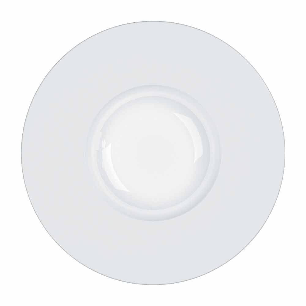 Das Design dieses Teller-Sets wird als einfach, elegant und raffiniert für die Haute Cuisine präsentiert, mit breiten Kreisen und langen und großzügigen Bändern.
