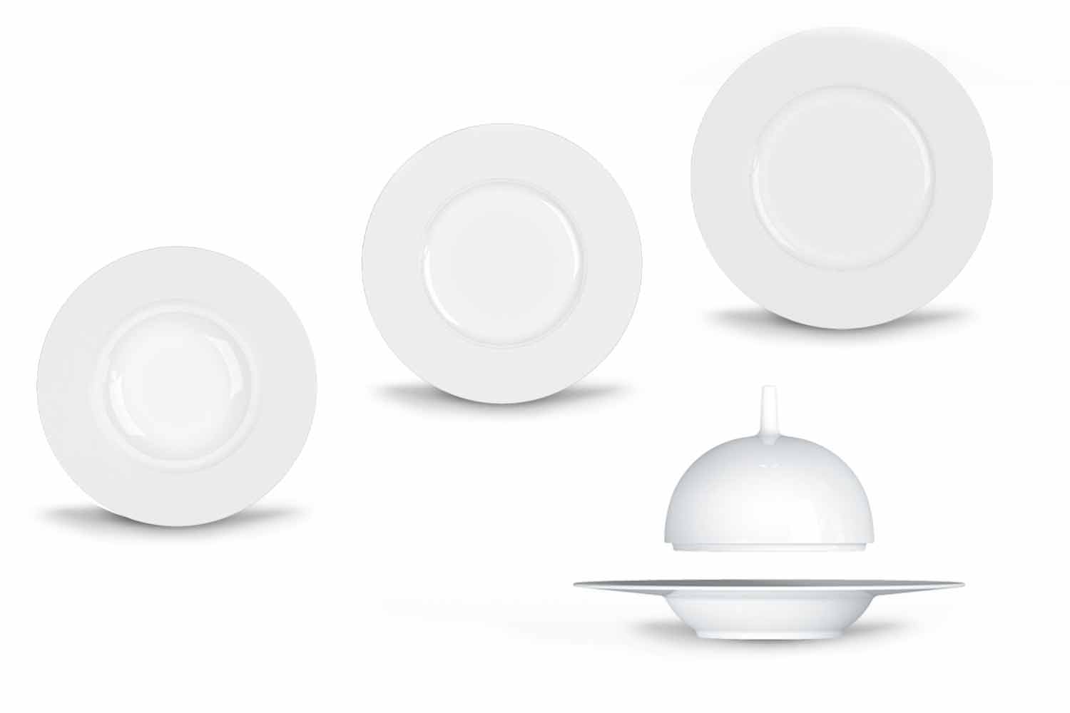 Minimaler und moderner Design-Teller aus weißem Porzellan, 24 Stück.