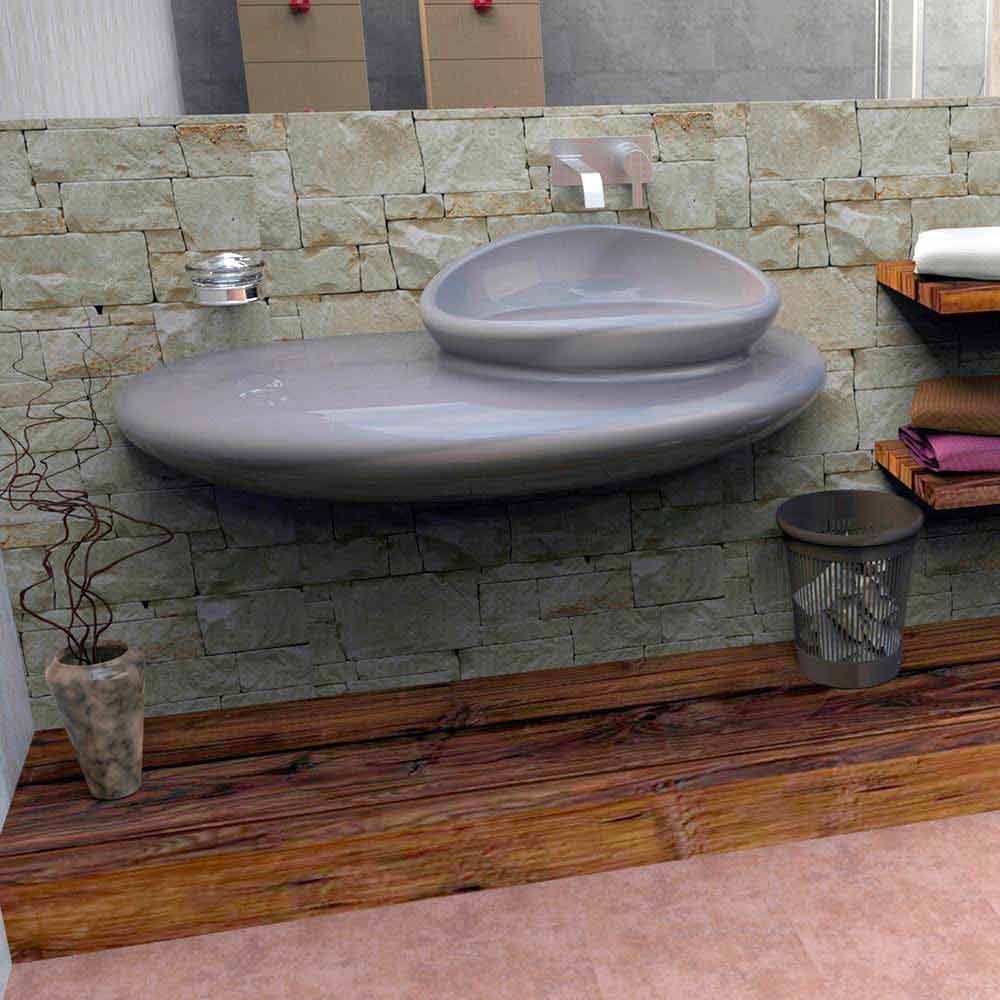 Das Finish des Solid Surface-Materials; lässt das Waschbecken in der süßen Form von Flusssteinen erscheinen. Hochglanz lackiert.