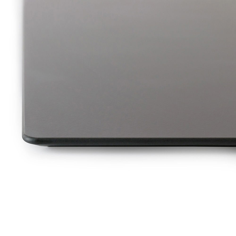 • Ecktheke mit linearer weißer LED mit anthrazitfarbenen HPL-Fachböden