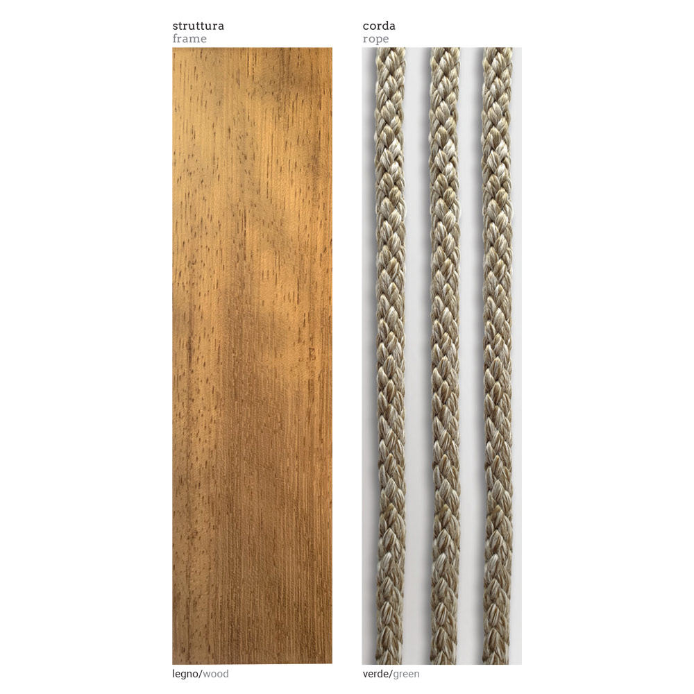 Strukturmaterial Iroko-Holz. Webt in grünem Seil
