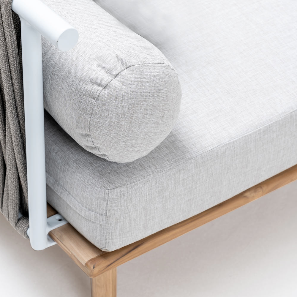 Kissen werden mit Polyurethanschaum und Dacronpolsterung hergestellt. Die Kissenbezüge werden immer aus Stoffen hergestellt, die speziell für den Außenbereich geeignet sind (mit Behandlungen und Eigenschaften wie Lichtbeständigkeit und Wasserabweisungsvermögen). Um ein Einlaufen zu vermeiden und die Eigenschaften des Stoffes zu erhalten, empfehlen wir eine chemische Reinigung oder Handwäsche bei niedrigen Temperaturen.