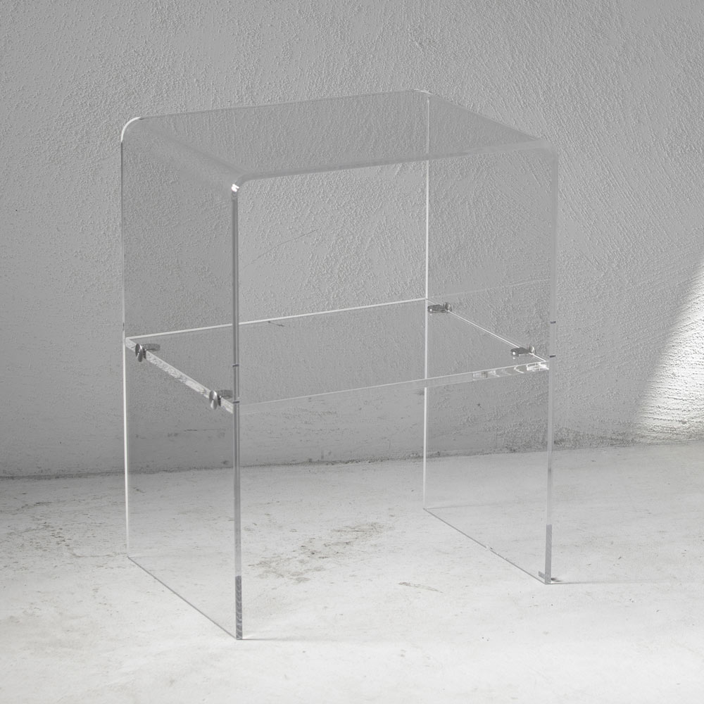 Nachttisch aus transparentem Acrylglas mit Ablage, hergestellt in Italien.
