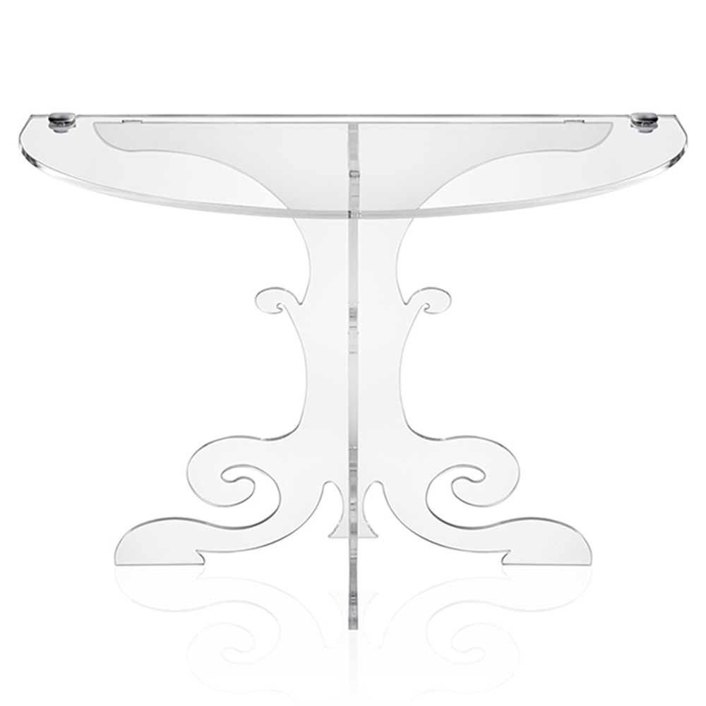 Der Nachttisch TIANA ist von den Louis XVI-Wandkonsolen des späten 18. Jahrhunderts inspiriert und mit den technologischsten transparenten Materialien neu interpretiert: 100 % PMMA-Acrylkristall aus reinem Polymer. Die Geschmeidigkeit und Eleganz der Formen wird durch den Glanz und die Helligkeit des Materials verstärkt, die im Laufe der Zeit konstant und unverändert bleiben. Das verwendete PMMA-Plexiglas aus reinem Polymer ist ungiftig, hypoallergen, geruchlos und antibakteriell. 100 % recycelbar. Konzipiert, entworfen und hergestellt in Italien, mit italienischen Materialien.