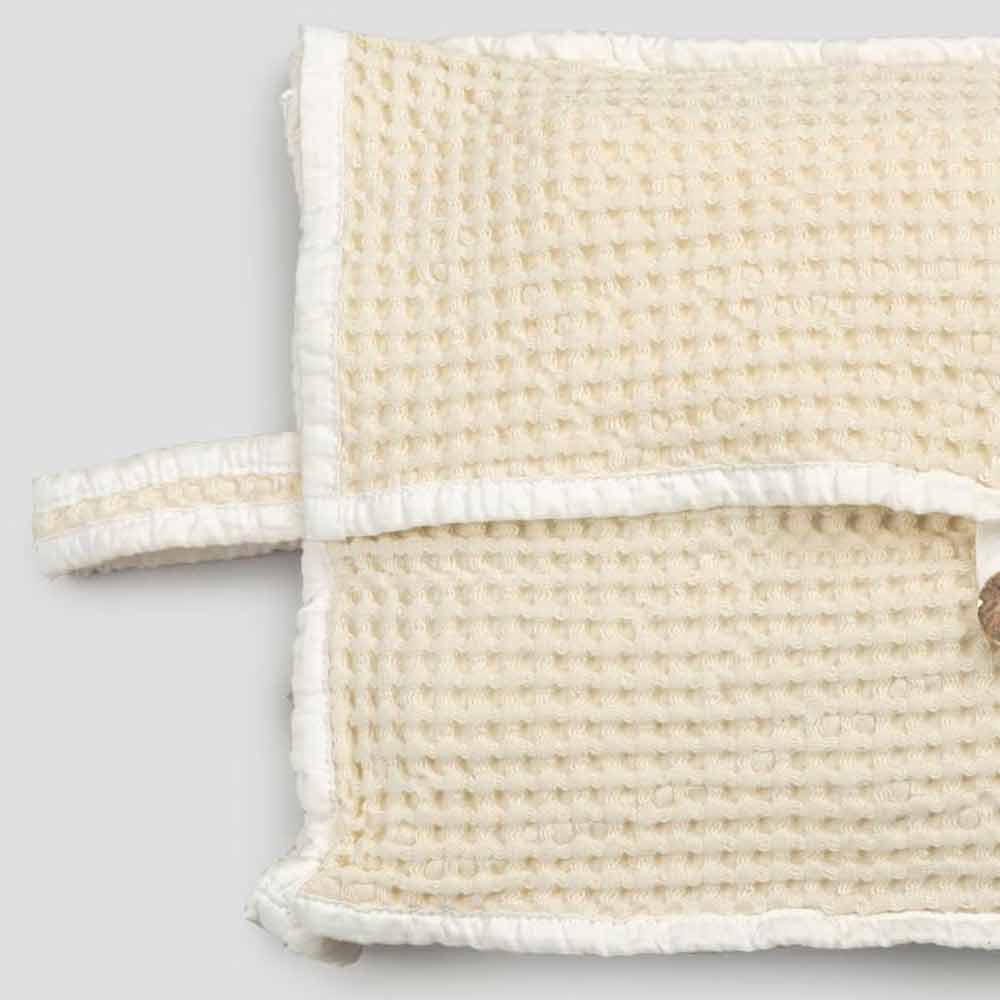 Natürliche weiße Waben-Baumwoll-Clutch-Tasche mit Perlmuttknopf - Anteha