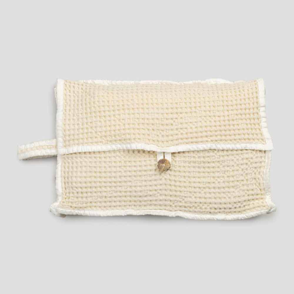 Elegante Pochette aus Wabenbaumwolle mit Perlmuttknopfverschluss, hergestellt in Italien.