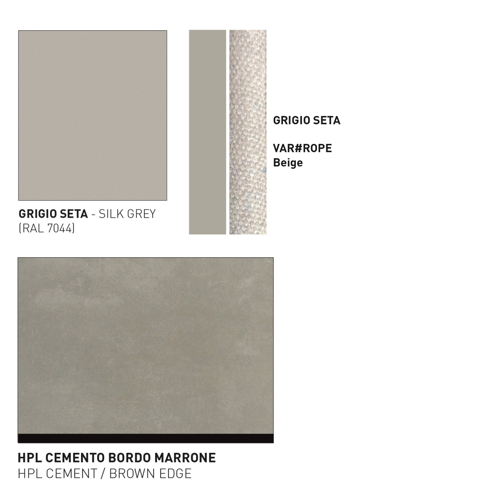 - graues Bein, VAR # ROPE dunkelgraues Gewebe, seidengraue HPL-Platte.