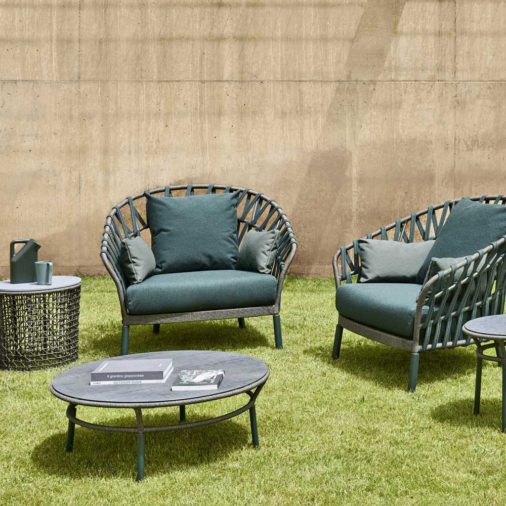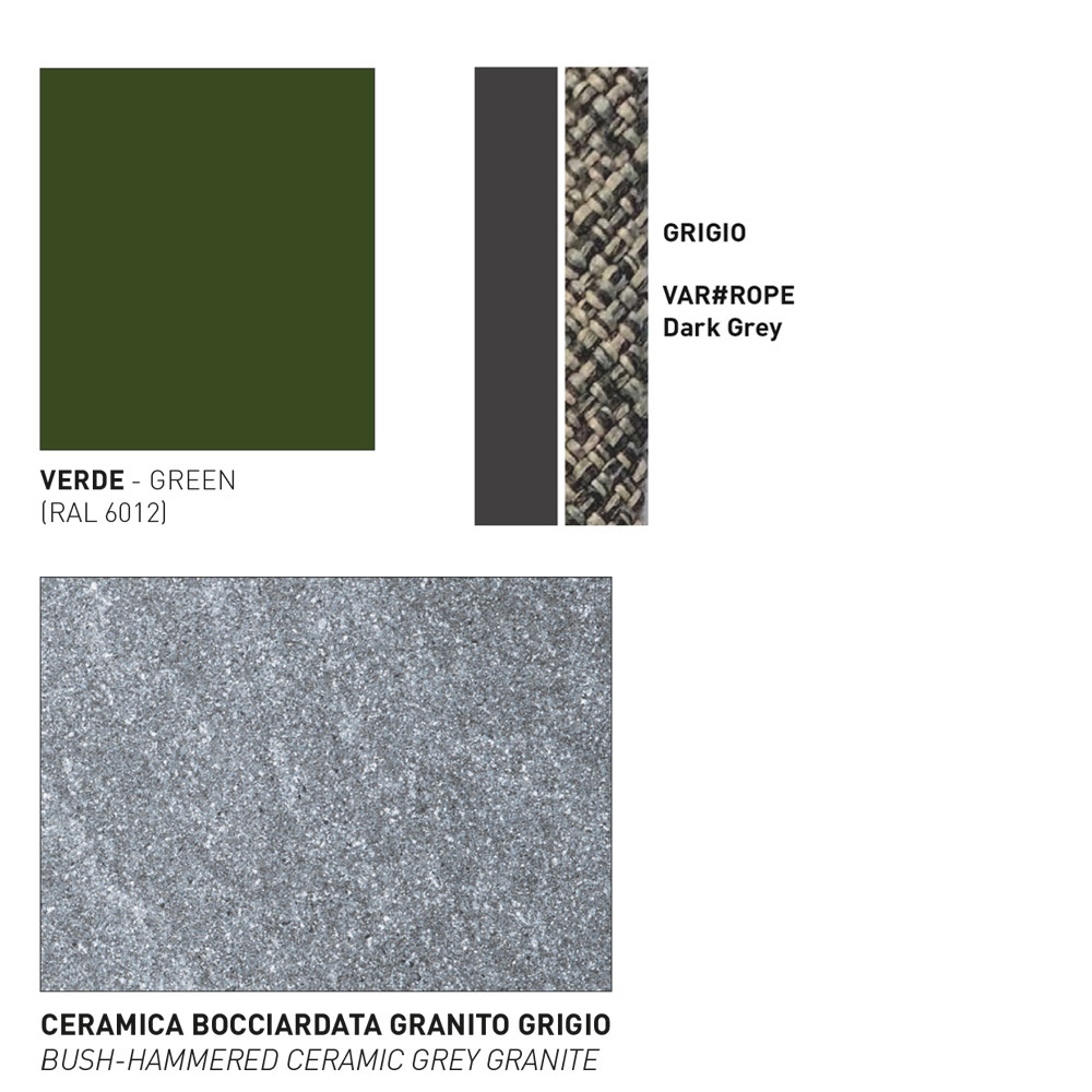 - grünes Bein, VAR # ROPE dunkelgraues Geflecht, gestockte Keramikplatte aus grauem Granit;