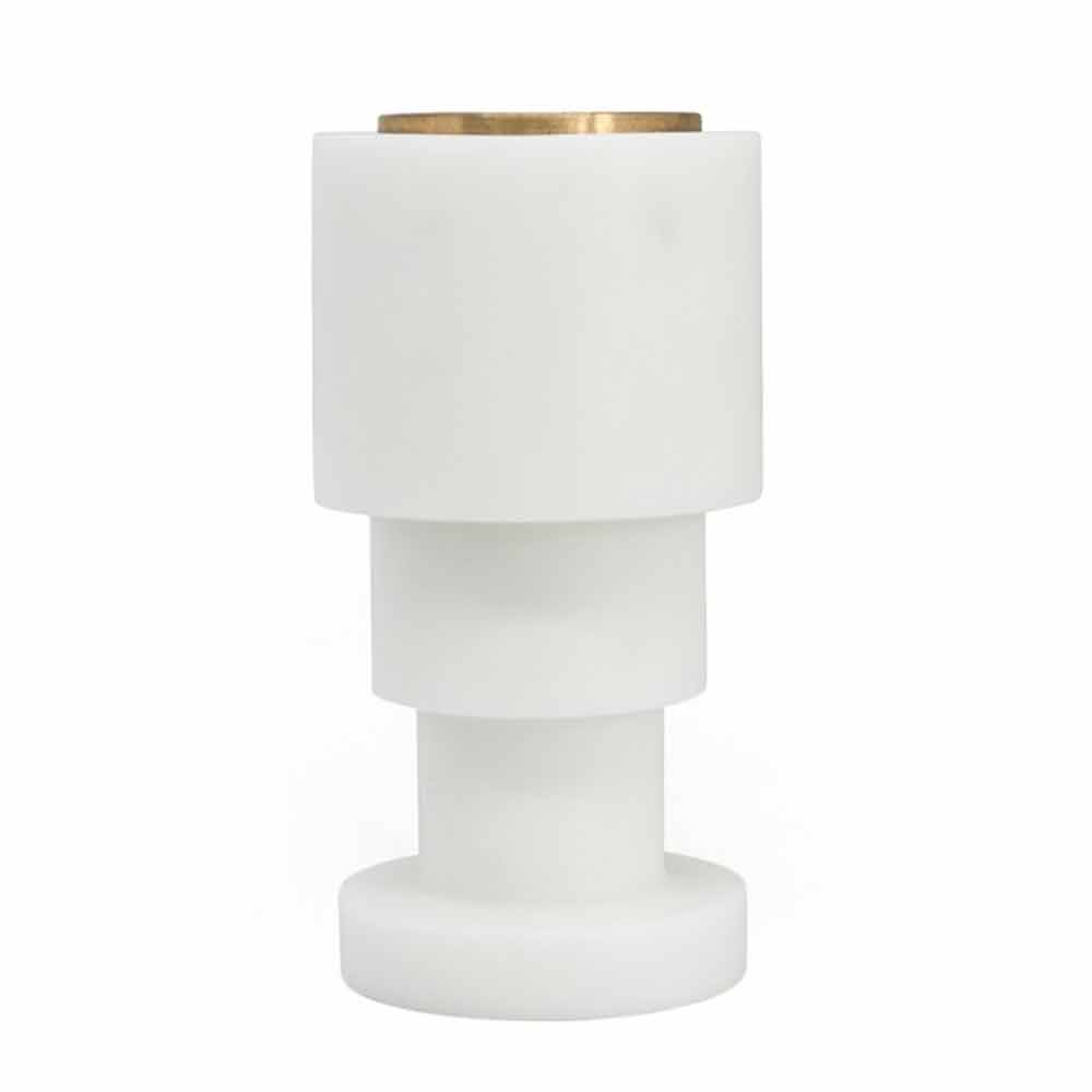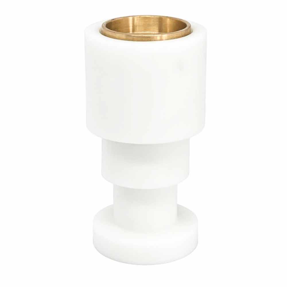 Niedriger Kerzenhalter aus hochwertigem weißem Carrara-Marmor und Messing . Es ist ein Unikat, da sich jeder verwendete Marmorblock von den anderen für Adern und Schattierungen unterscheidet. Der Marmor stammt aus dem Steinbruch Poggio Silvestre, der seit dem letzten Jahrhundert aus hochwertigem weißem Marmor stammt.