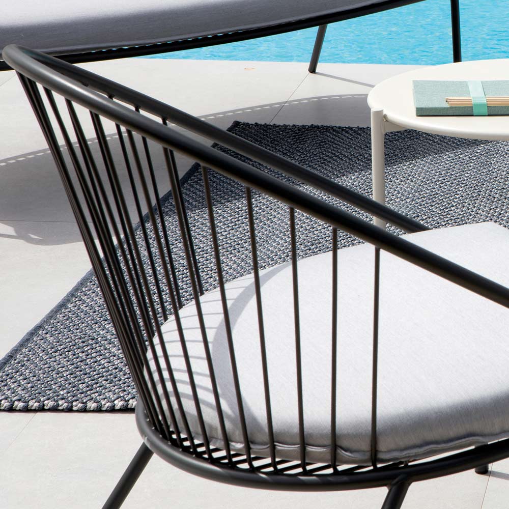 Gartenmöbel-Sessel, komplett in Italien aus verzinktem Stahl hergestellt. Die Stahlverarbeitung verleiht der Oberfläche eine hervorragende Korrosionsbeständigkeit durch Witterungseinflüsse wie Regensäure oder Salz und macht den Sessel zu einem perfekten Einrichtungselement für jeden offenen Raum.