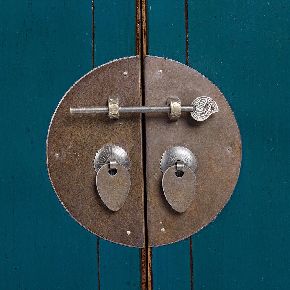 Abgerundet wird das Design durch die praktischen Kupfergriffe an den 2 Türen und an den 2 Schubladen für ein Ergebnis im Vintage-Stilmit ethnischem Touch.