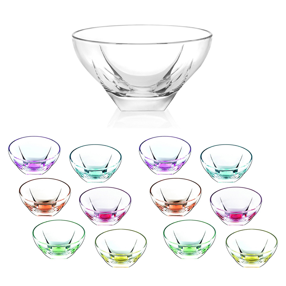 • 12 farbige oder transparente Schalen: Durchmesser 13,5 x H 7,1 cm