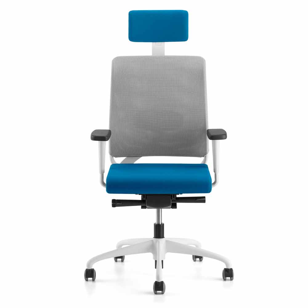 Schwenkbar und mit Rädern ausgestattet , ist er mit einer Netzrückenlehne und verstellbarer Lordosenstütze sowie einer praktischen Kopfstütze für absoluten Komfort ausgestattet, mit TÜV GS-Zertifizierung.