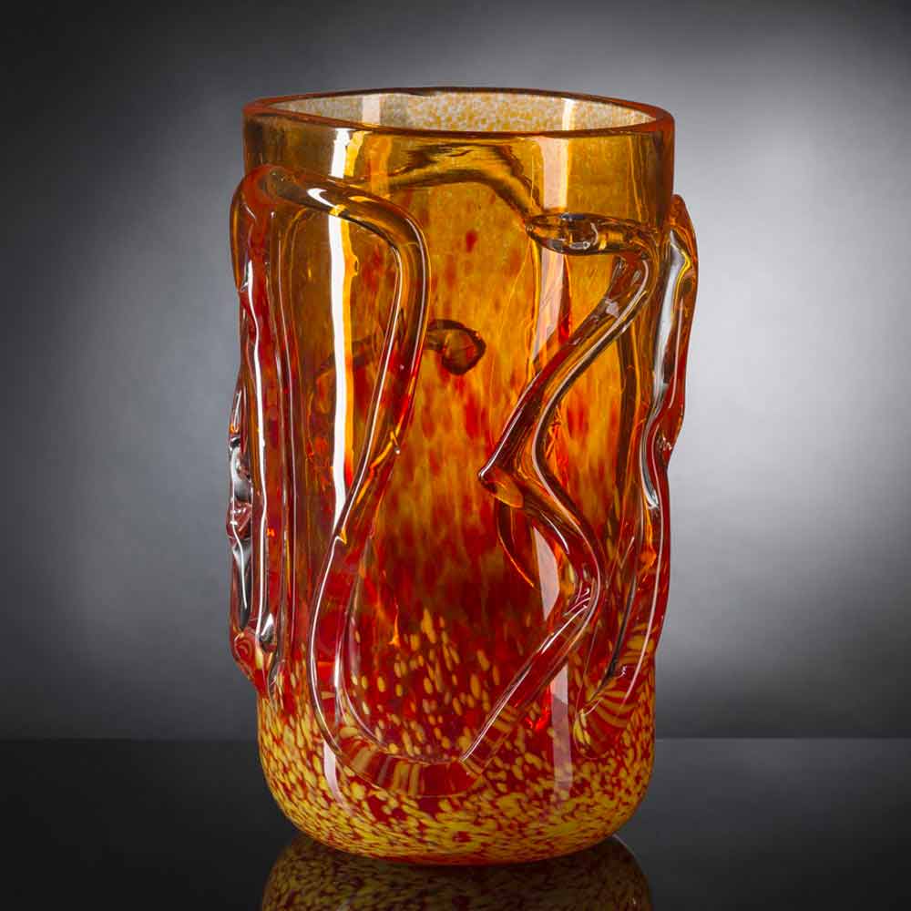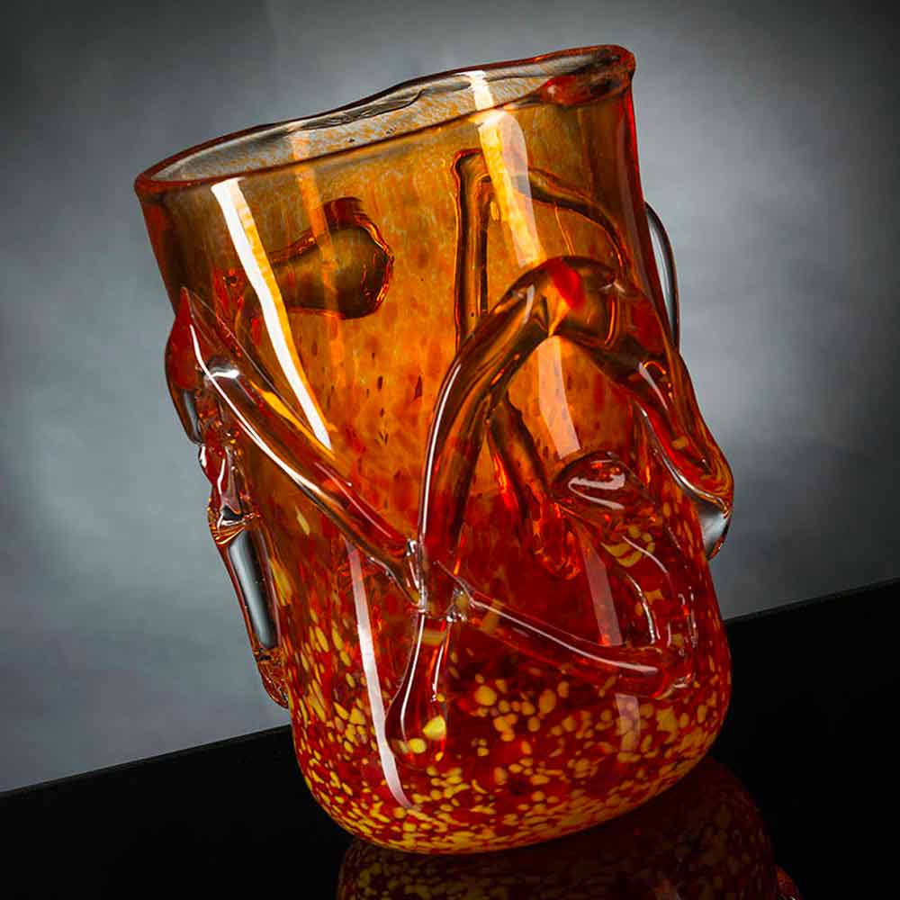 Orangefarbene dekorative Vase aus geblasenem Muranoglas Made in Italy - Mister