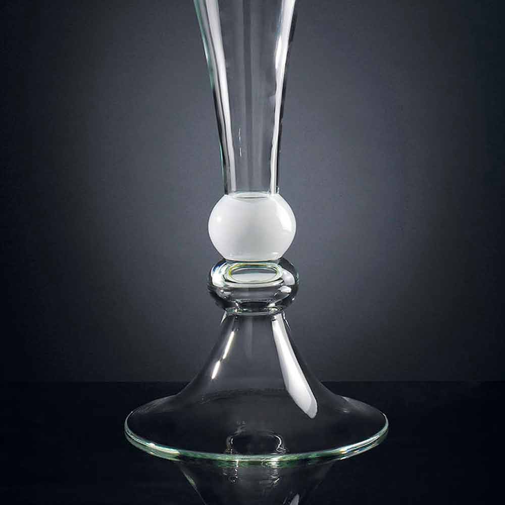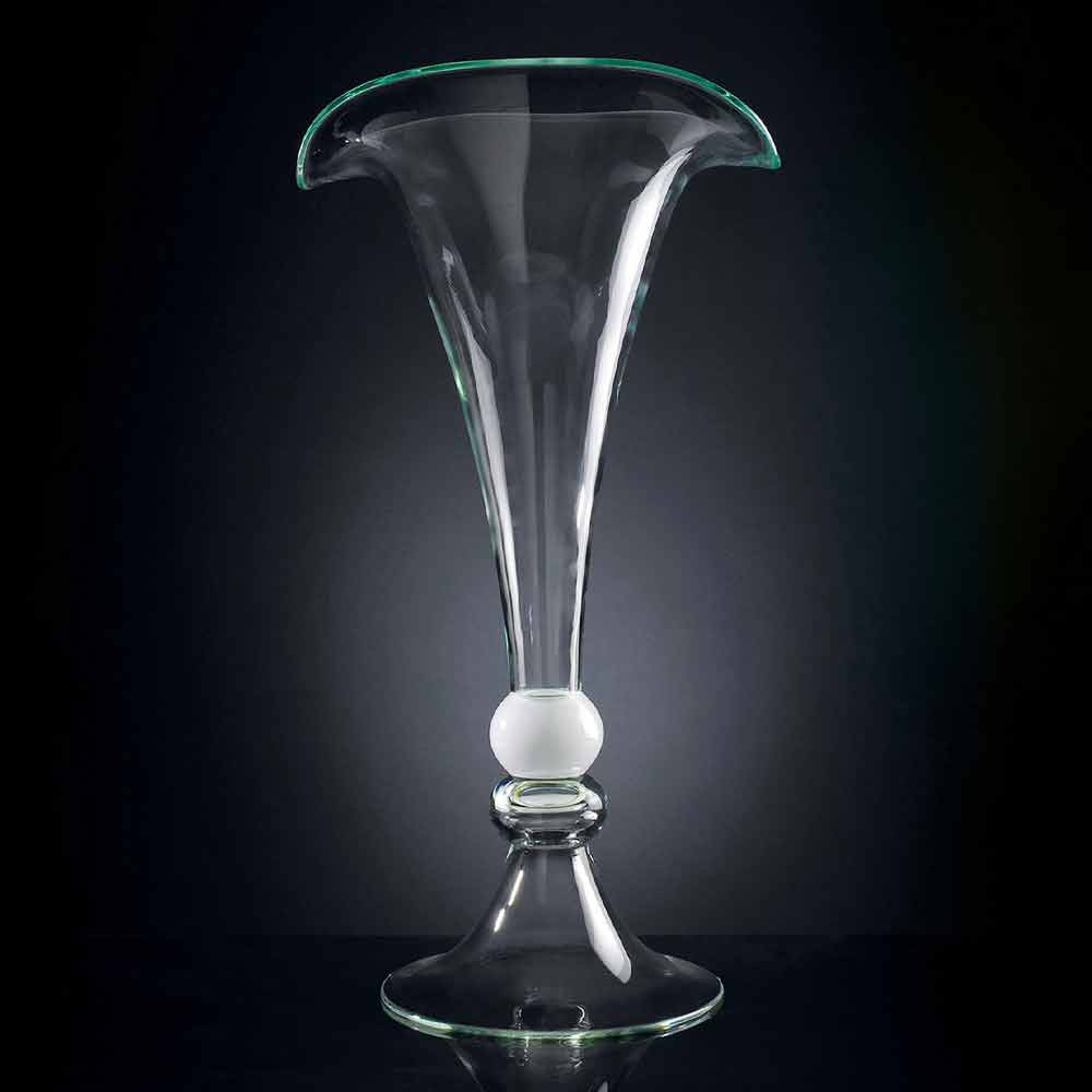 Dekorative Vase für Innenräume aus transparentem Glas mit weißer Glaskugel, handgefertigt durch eine 100% Made in Italy Verarbeitung . Seine Besonderheit wird gerade durch die handwerkliche Herstellung repräsentiert, die seinen Wert und Wert erhöht, um ein exklusives und hochwertiges Ergebnis sowie eine raffinierte und stilvolle Ergänzung zum Leben zu erwecken, Eigenschaften, die durch die zeitlose Eleganz des Glases gegeben sind. Ein ideales Design für die unterschiedlichsten Umgebungen, von der Wohnungseinrichtung bis hin zu Hotels, Restaurants, Objektbereichen, Spas, aber auch als Rahmen für Veranstaltungen und Hochzeiten.